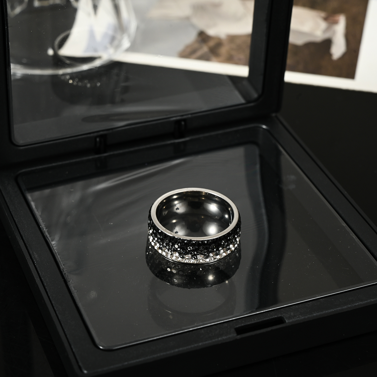 原创黑白渐变戒指男女高级感简约小众设计情侣对戒钛钢食指戒指环