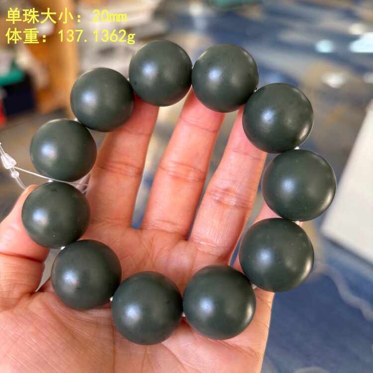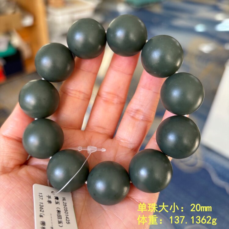 N20mm青玉籽料圆珠手串 无原皮 朕®开仓新疆和田玉