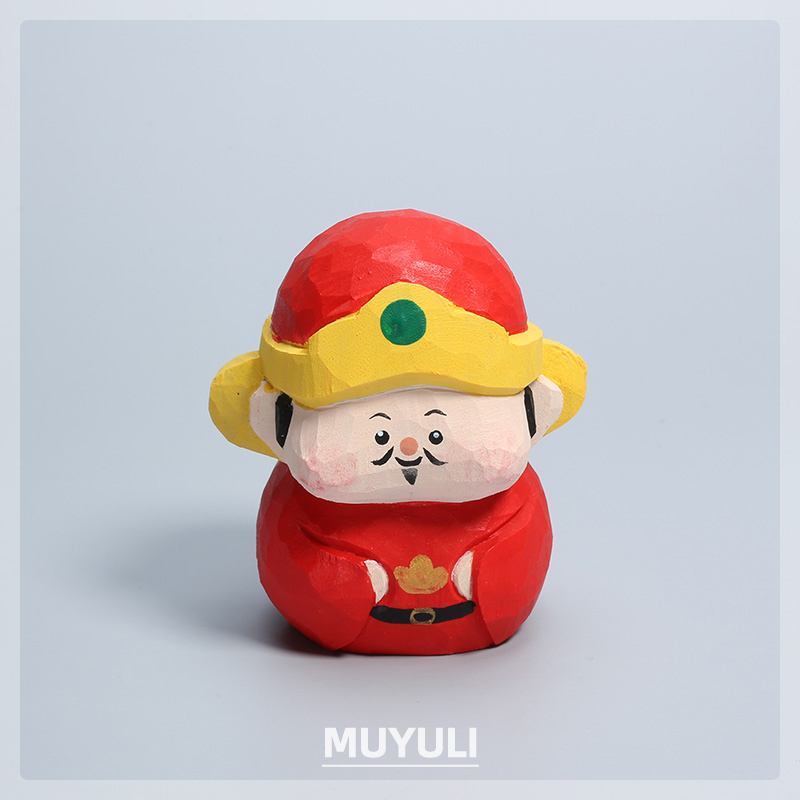 手工木雕财神木质摆件工位桌面招财装饰品办公室创意木质小饰品