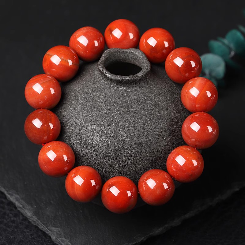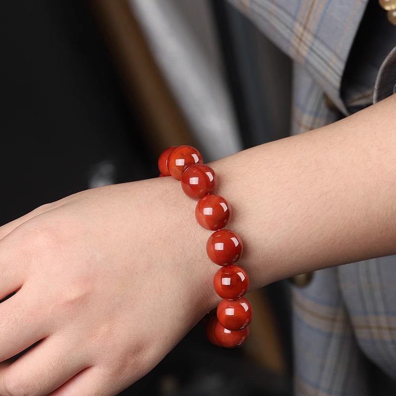 14MM超美大颗粒火焰红精品玛瑙手链文玩手串南红色品质