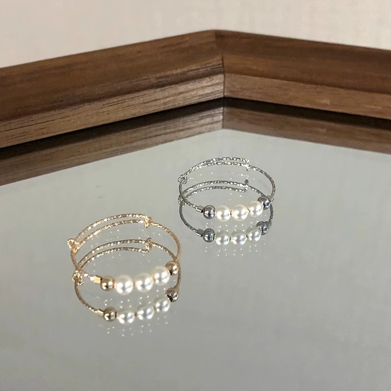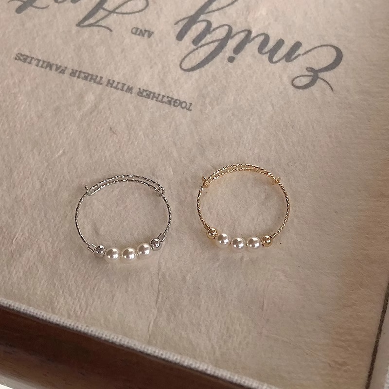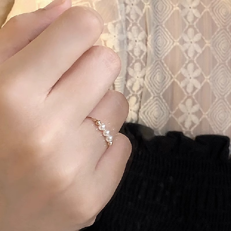 人造珍珠素圈戒指女精致百搭时尚高级感指环轻奢小众设计感食指戒