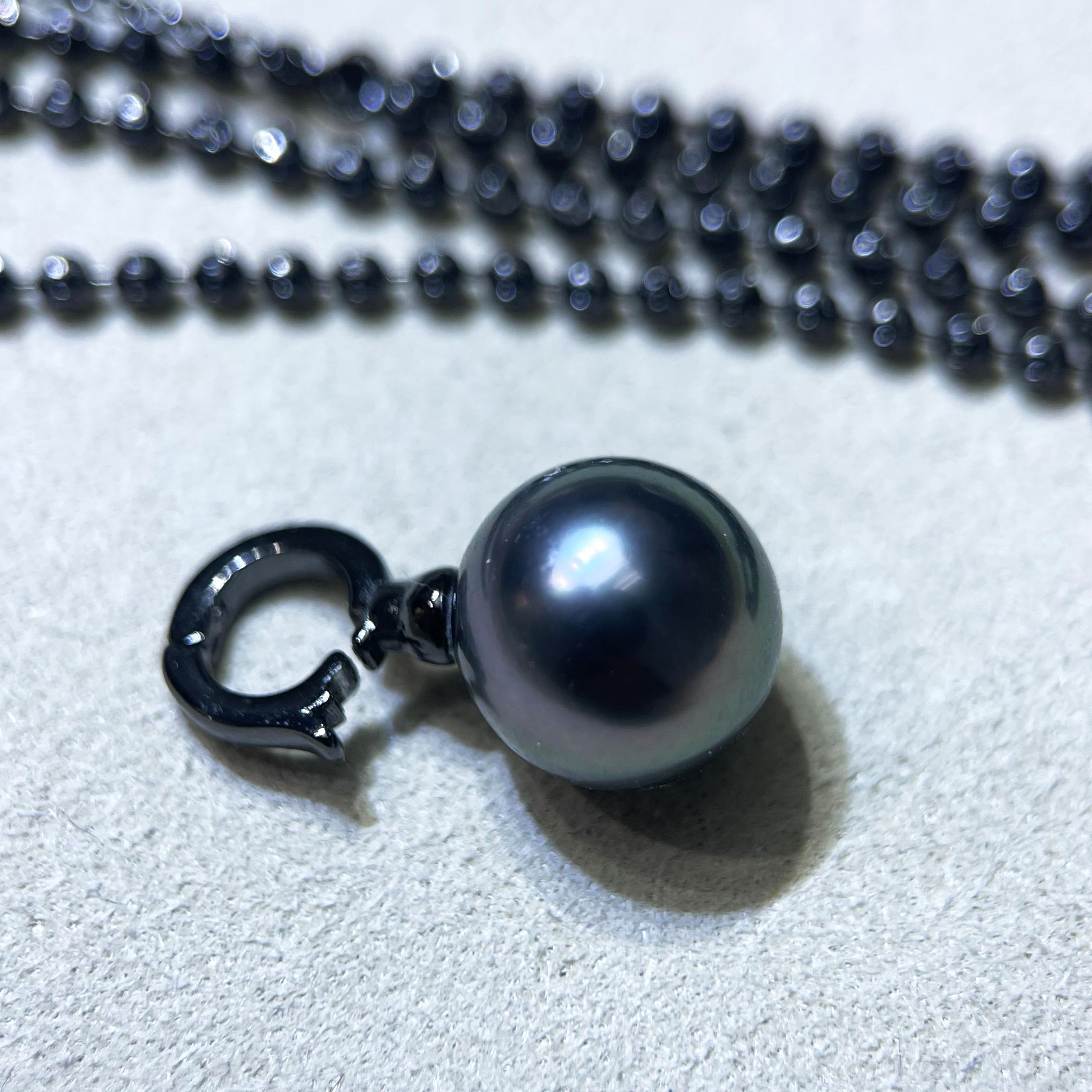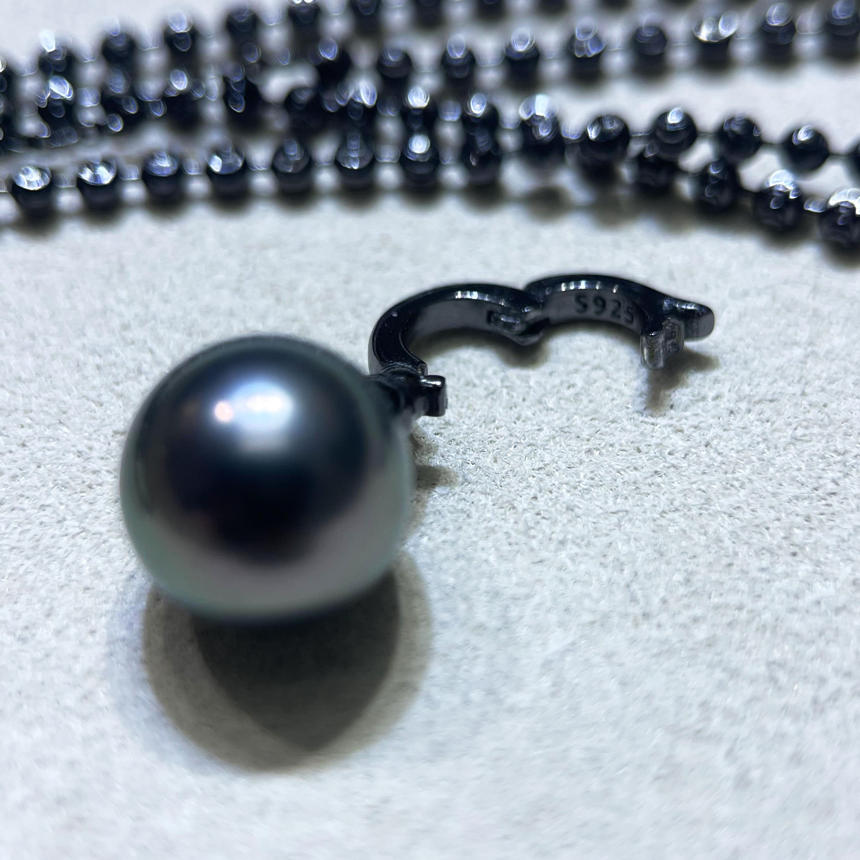 DIY珍珠配件 S925纯银黑色吊坠项链空托 扣子款项链坠小众设计感