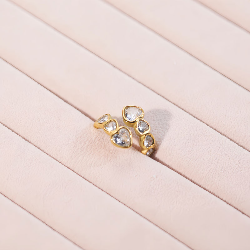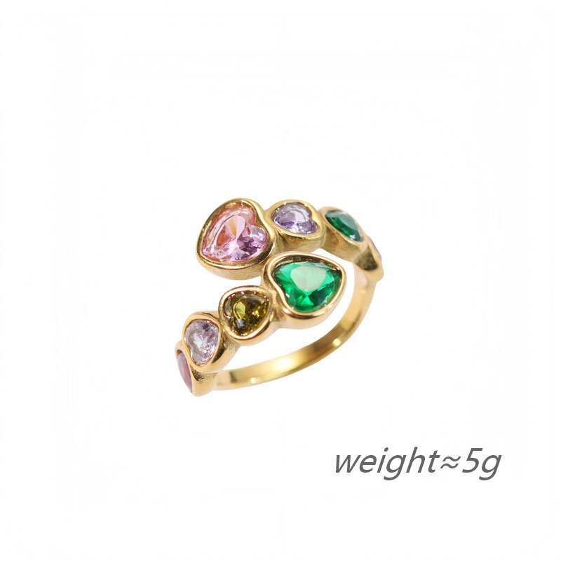 欧美跨境设计桃心镶钻戒指女钛钢镀18K金指环INS轻奢中指食指手饰