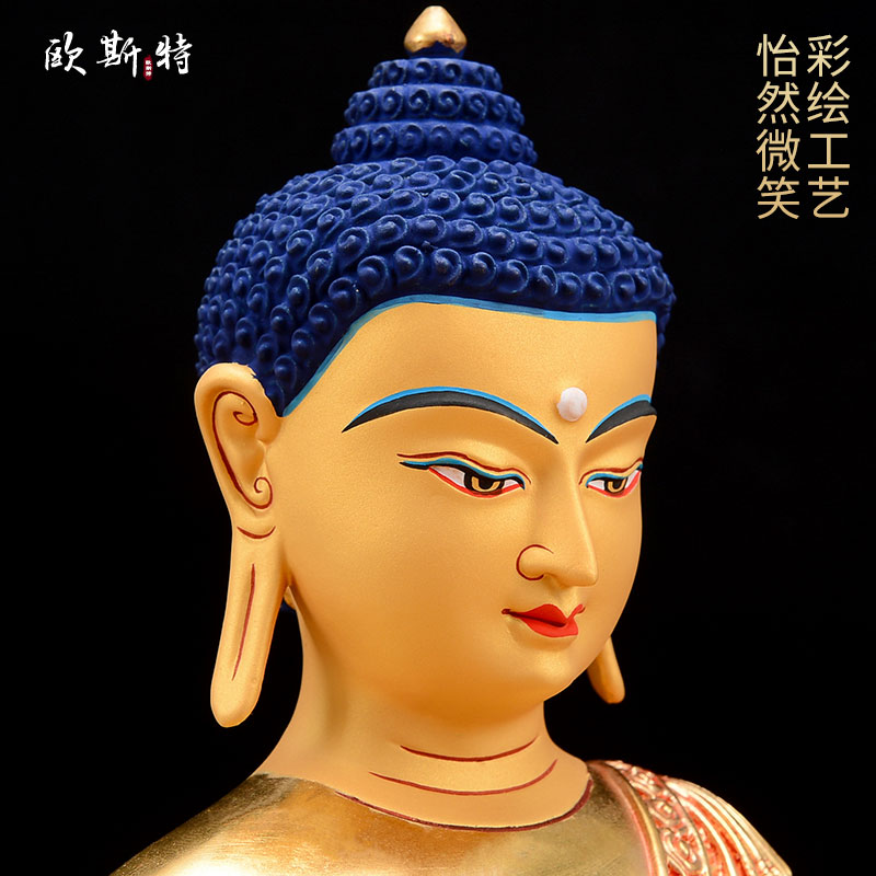 欧斯特 释迦牟尼铜像 西藏全鎏金雕花居家客厅释迦摩尼佛摆件10寸
