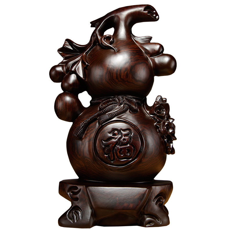 黑檀实木质雕刻葫芦摆件客厅家居玄关装饰红木工艺品乔迁开业送礼