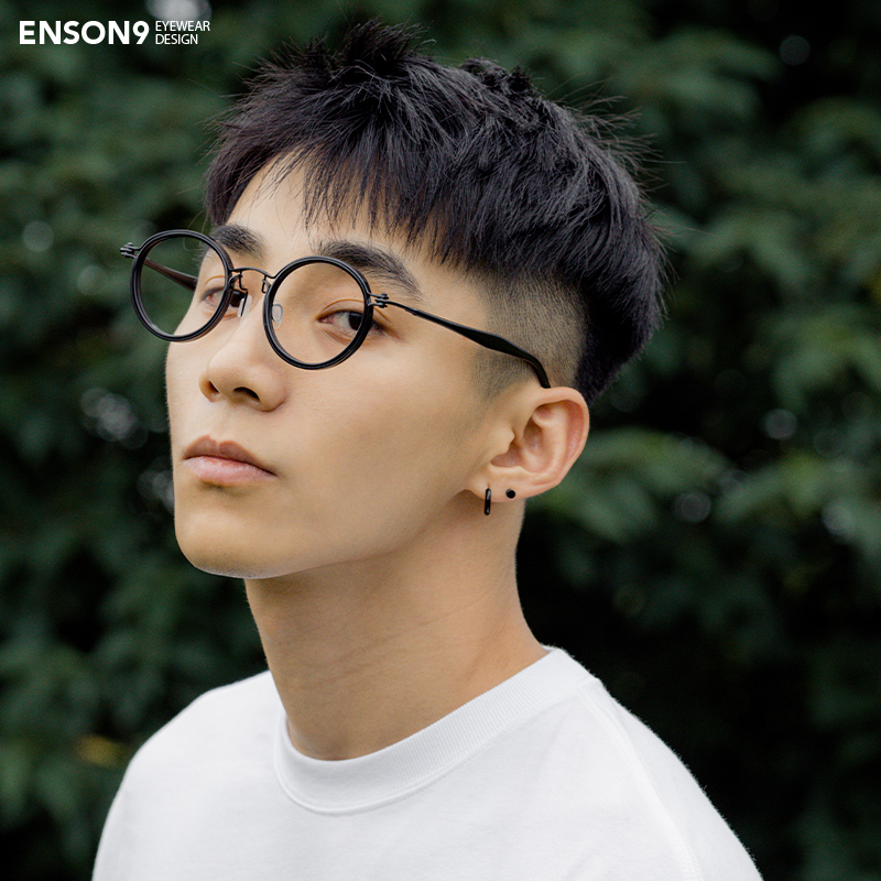 enson9日系复古板材纯钛圆框眼镜潮男 个性半透明可配近视平光镜