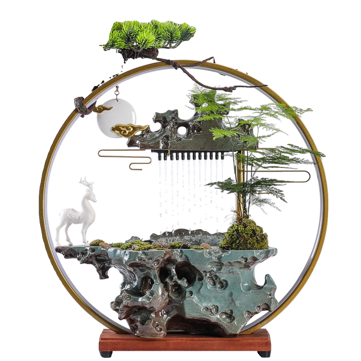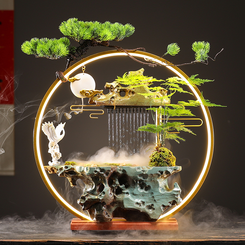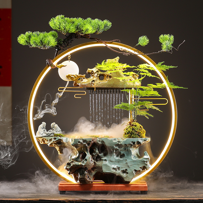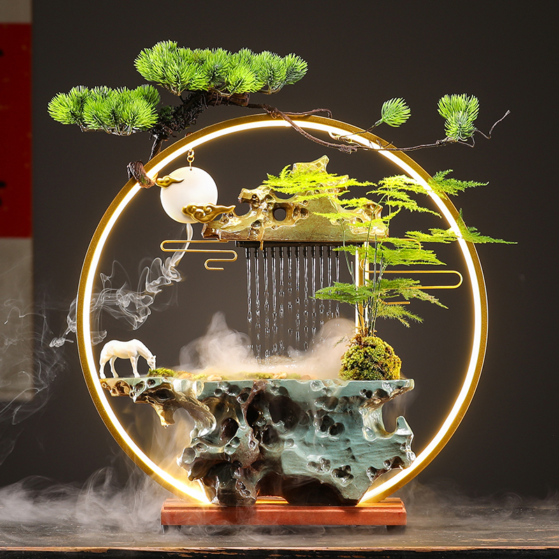 中式创意流水生财景观摆件家居客厅办公室桌面装饰品乔迁开业送礼