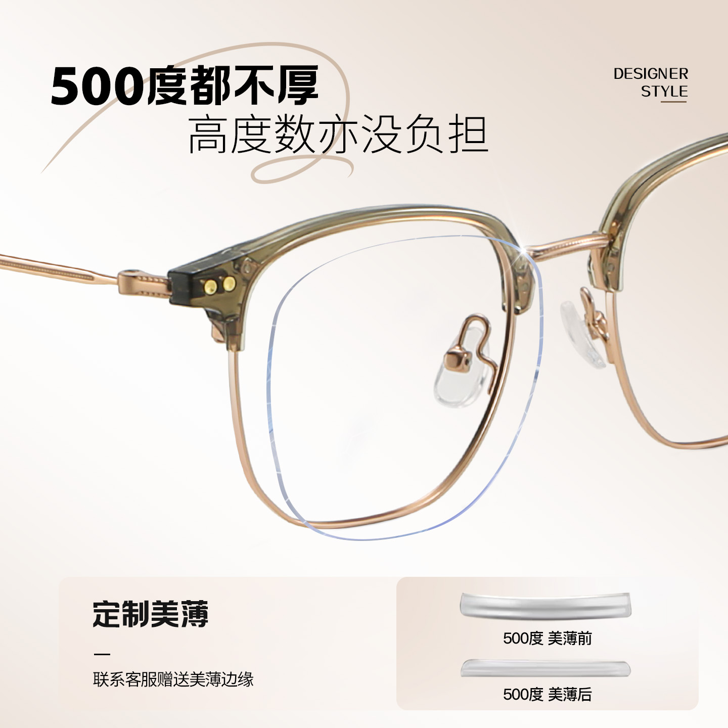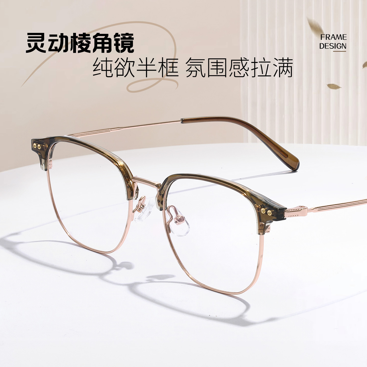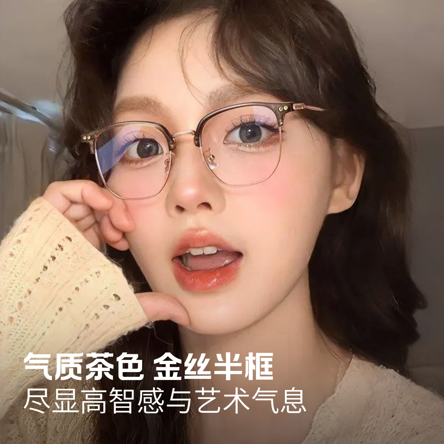 蔡司镜片防蓝光半框眼镜女超轻钛架茶色素颜眼睛框可配近视度数