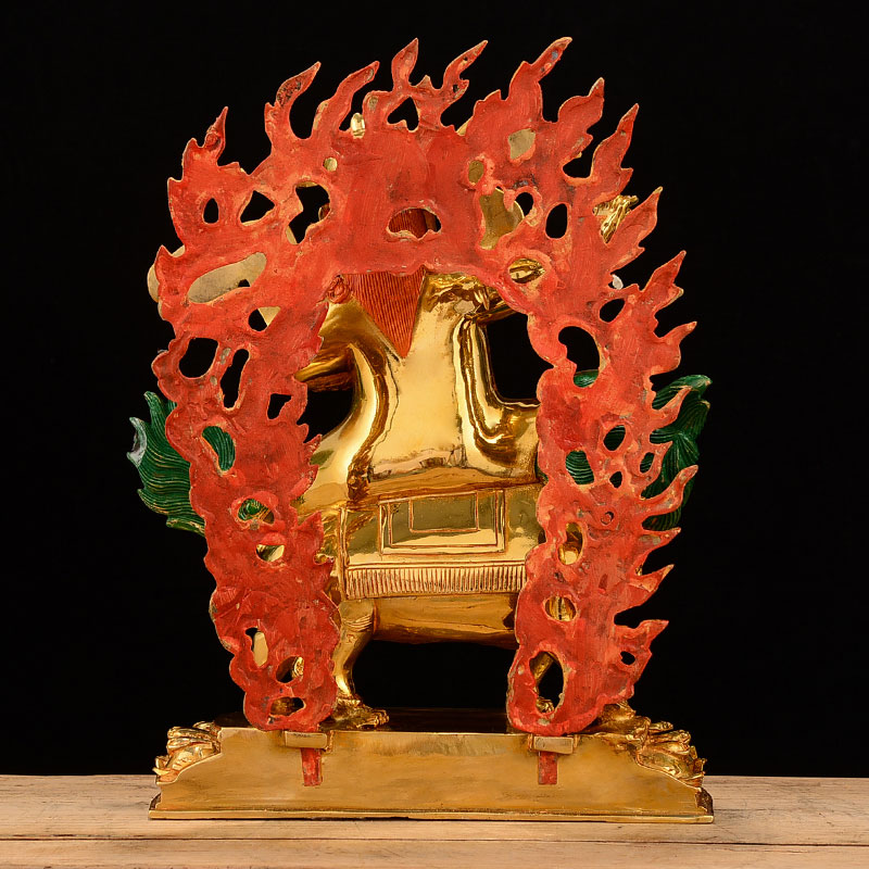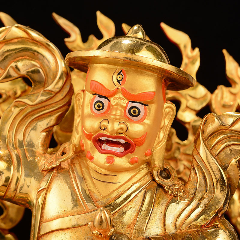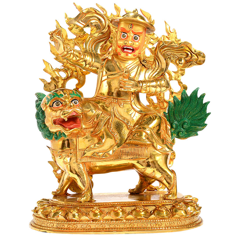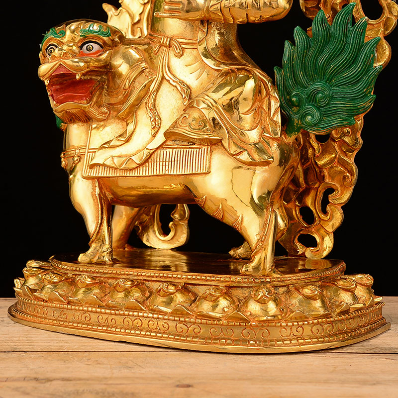 欧斯特 铜单坚护法像 家用居家全鎏金彩绘三根本单坚狮子10寸摆件