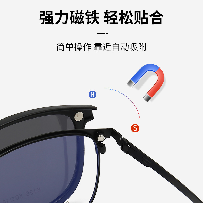 6126新款磁吸三合一近视眼镜男女夜视可配度数偏光贴片套镜太阳镜