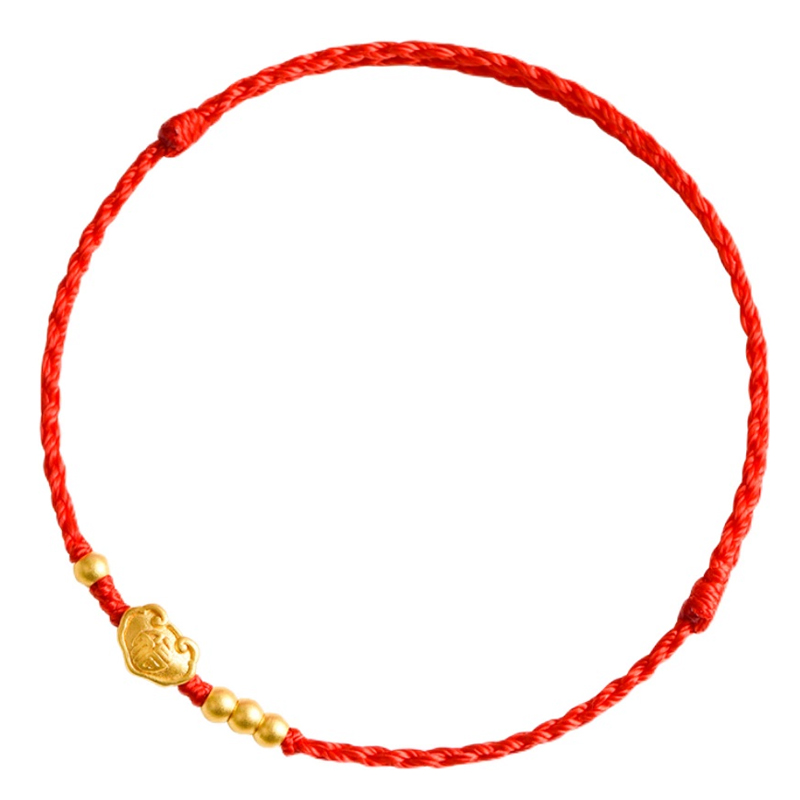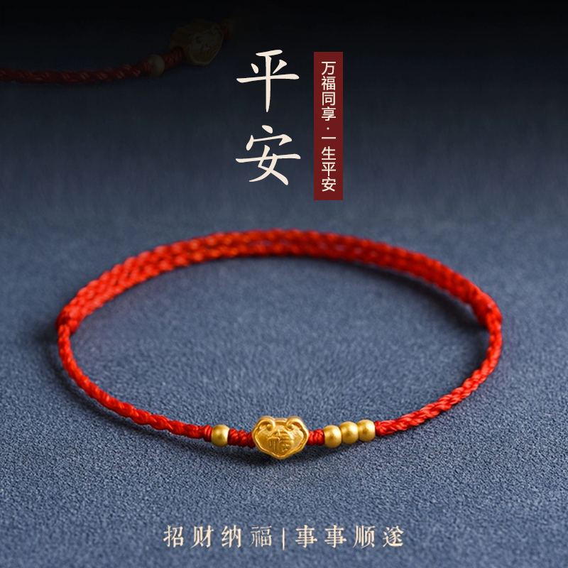 平安锁黄金手链本命年红绳超细手绳编织绳转运珠男女情侣脚链礼物