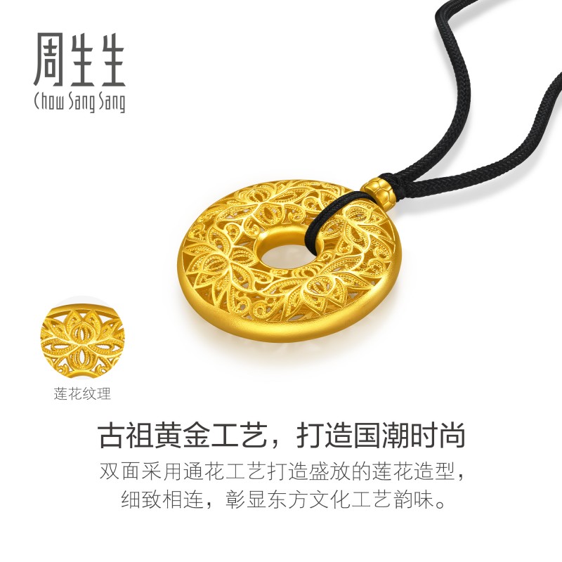 圣诞礼物周生生古法黄金莲花本命年平安扣项链足金吊坠90505Z计价