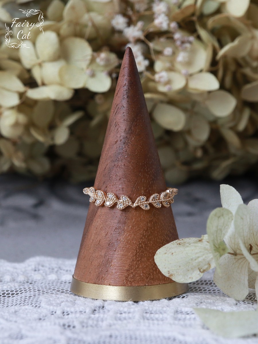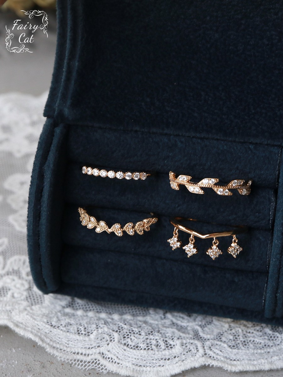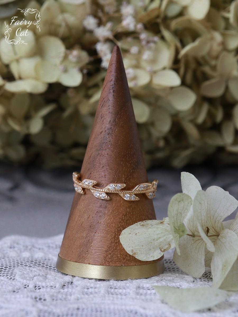 日系时尚个性唯美锆石树叶月桂叶灵动流苏四叶草戒指环925银镀金