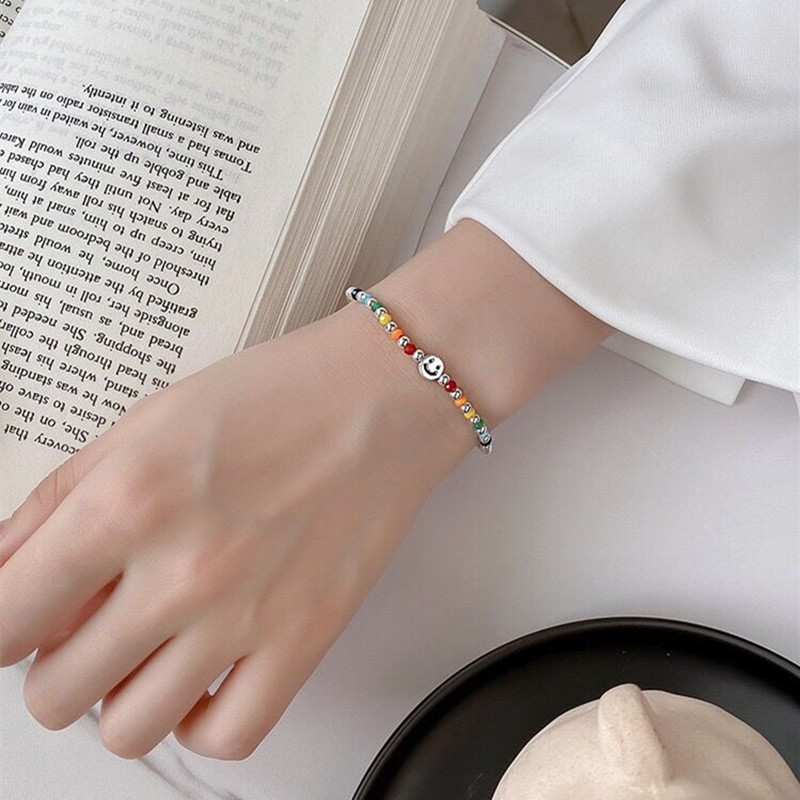 香港正生彩虹笑脸925纯银手链ins小众设计简约百搭气质手串送女友