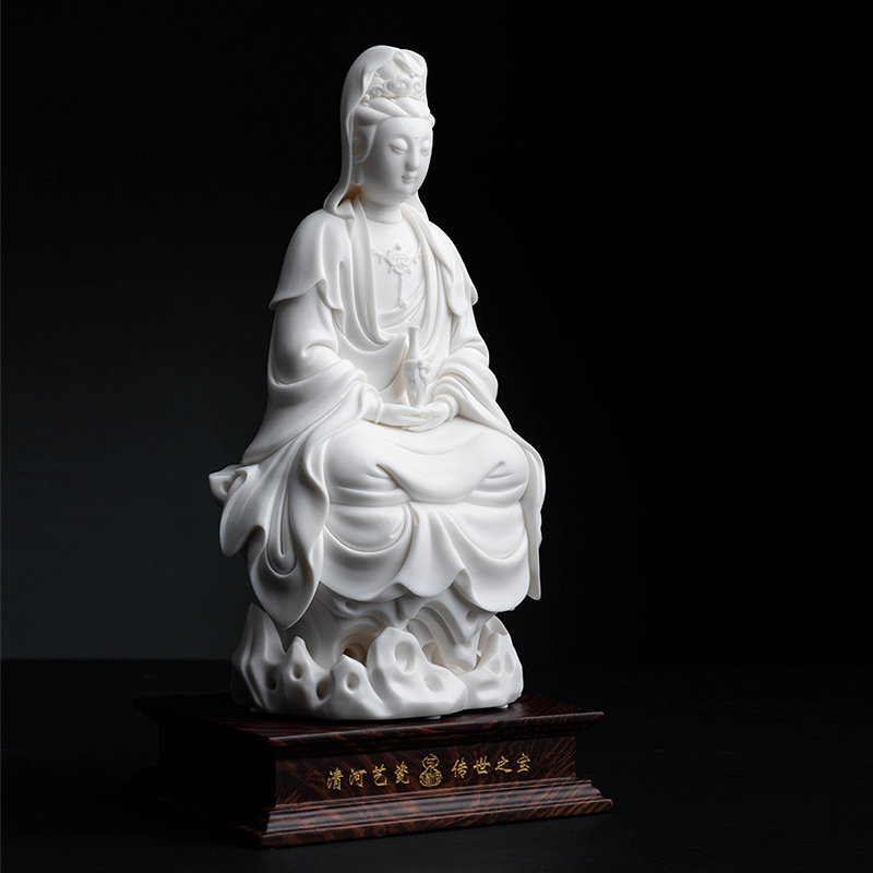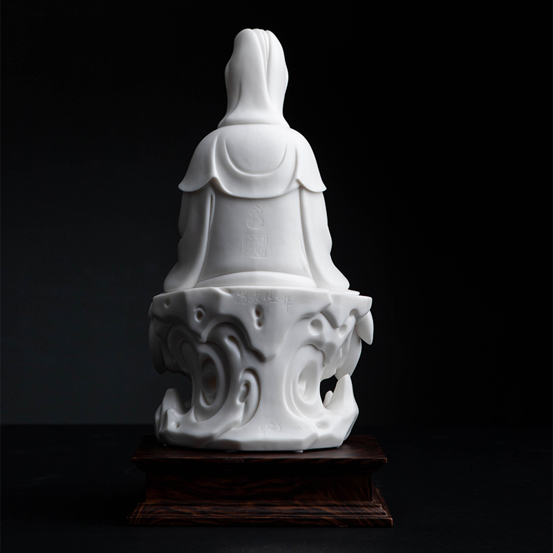 戴玉堂陶瓷坐岩净瓶观音省级大师苏友德观世音菩萨收藏艺术品摆件