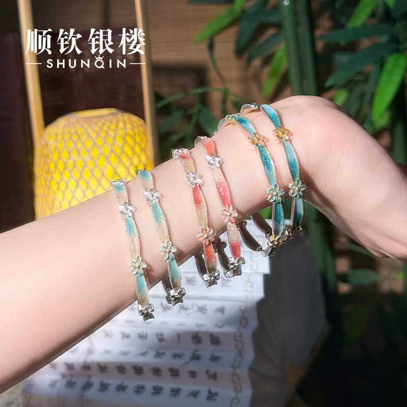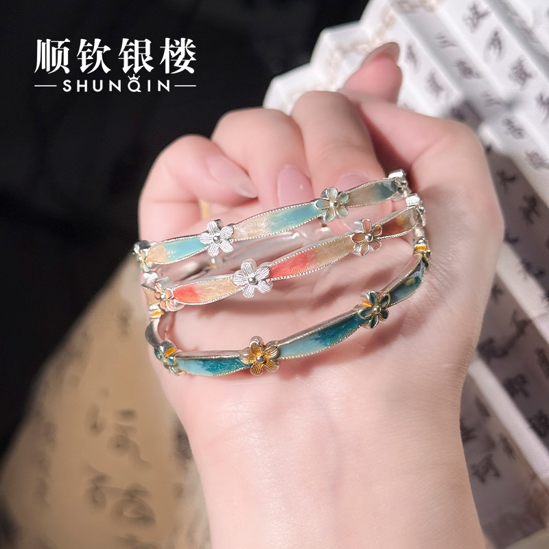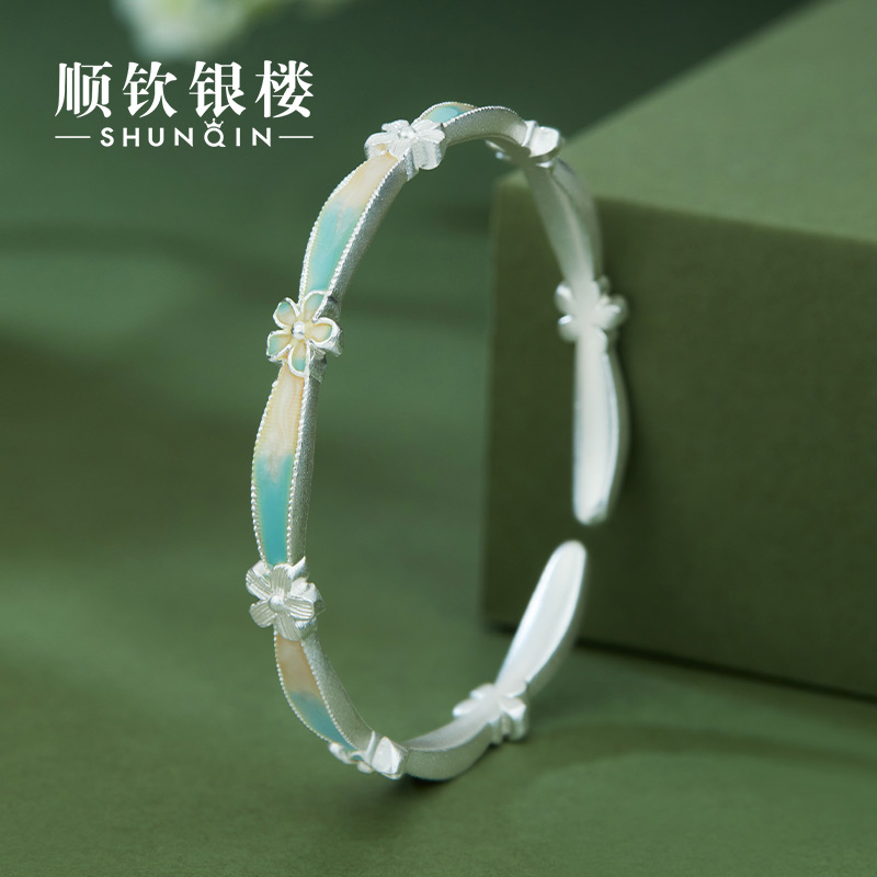 顺庆银楼足银S9999花枝春兰亭霜华手镯女款新中式国风高级感礼物