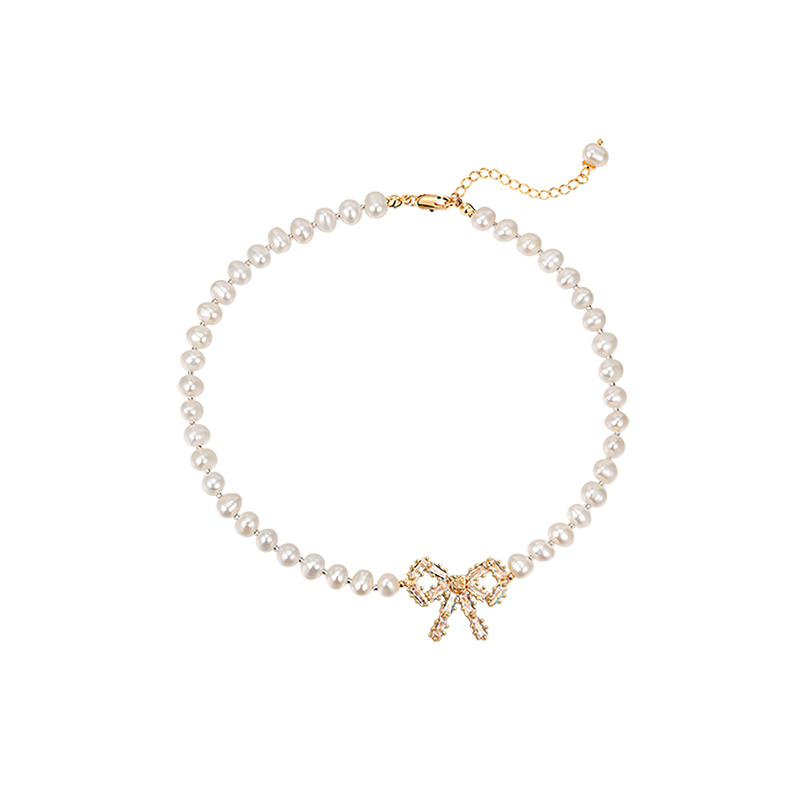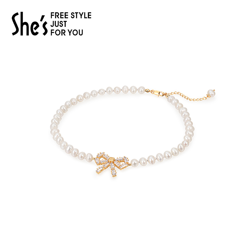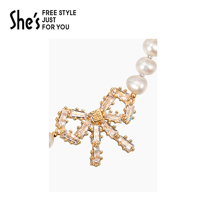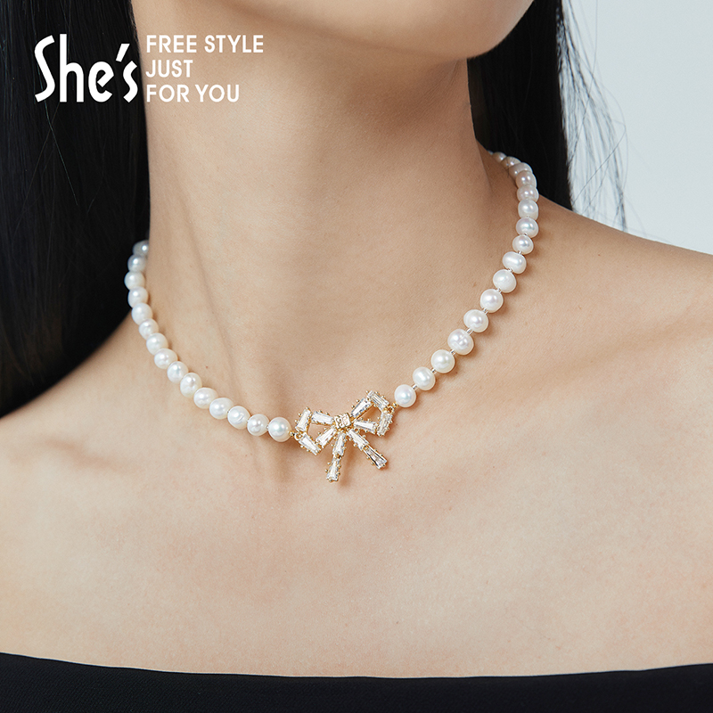shes茜子蝴蝶结吊坠珍珠项链颈链轻奢小众锁骨链配饰品生日礼物