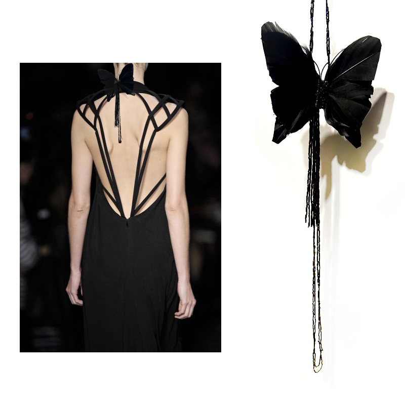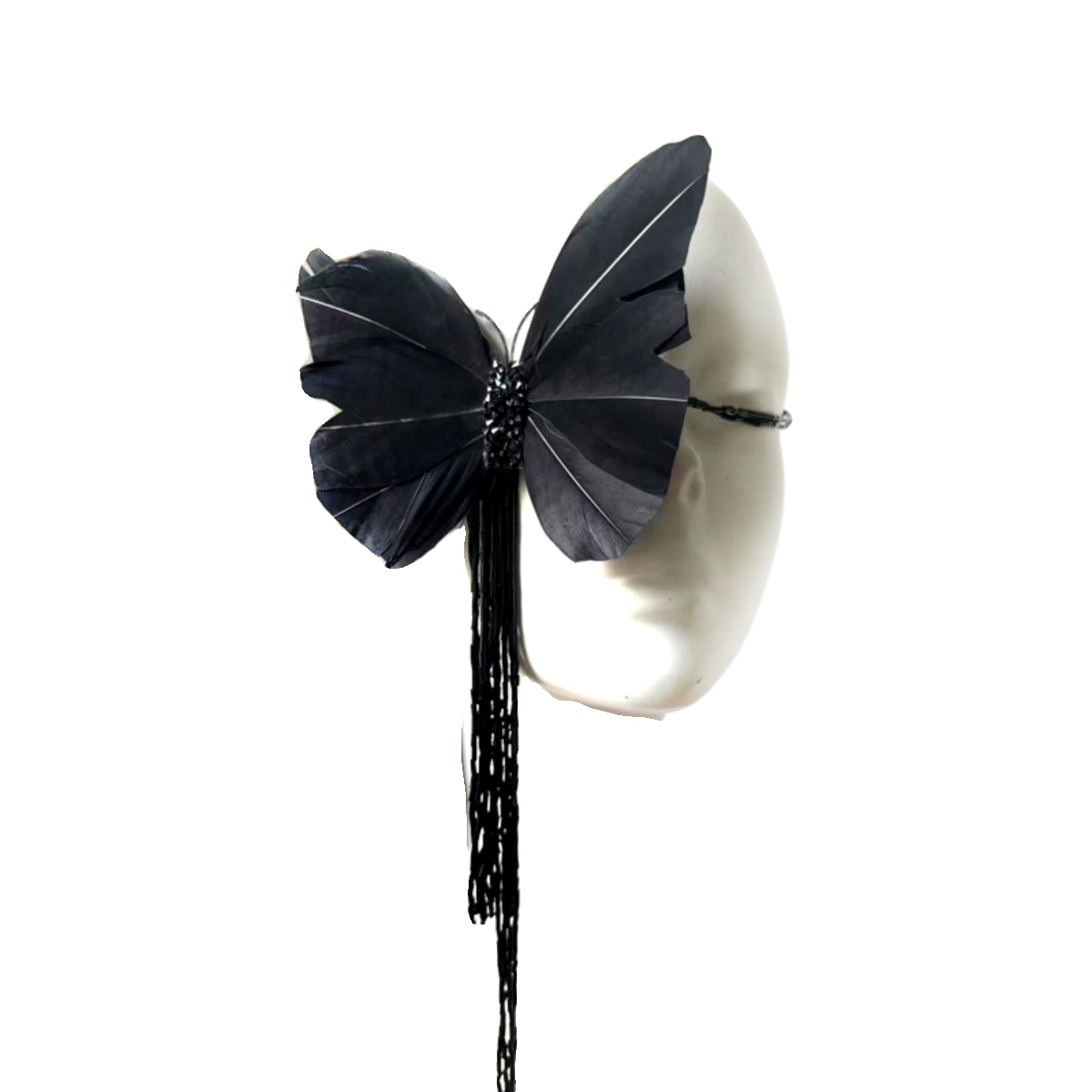 复古立体黑色羽毛手工蝴蝶重工串珠流苏颈饰项链腰带网红气质摄影