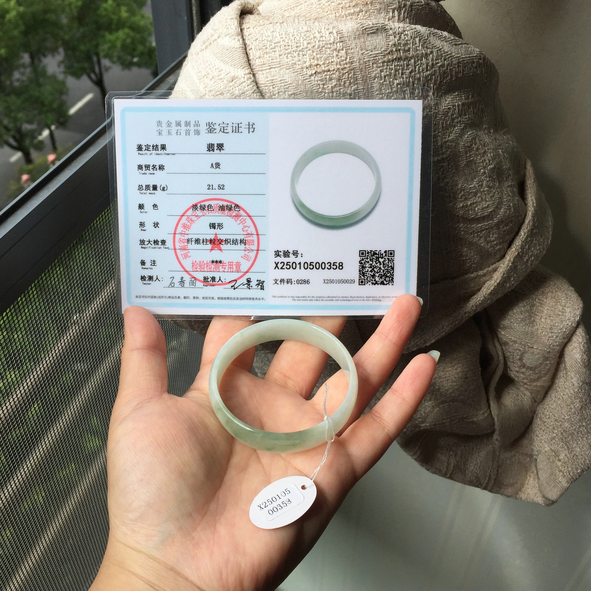 圈口约51.5mm天然缅甸料翡翠A货玉石镯子薄款正圈中福翡翠A货手镯