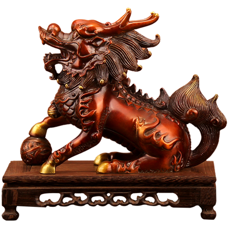 《祥瑞麒麟》全铜招财摆件一对大号公母铜麒麟送子家居客厅装饰品