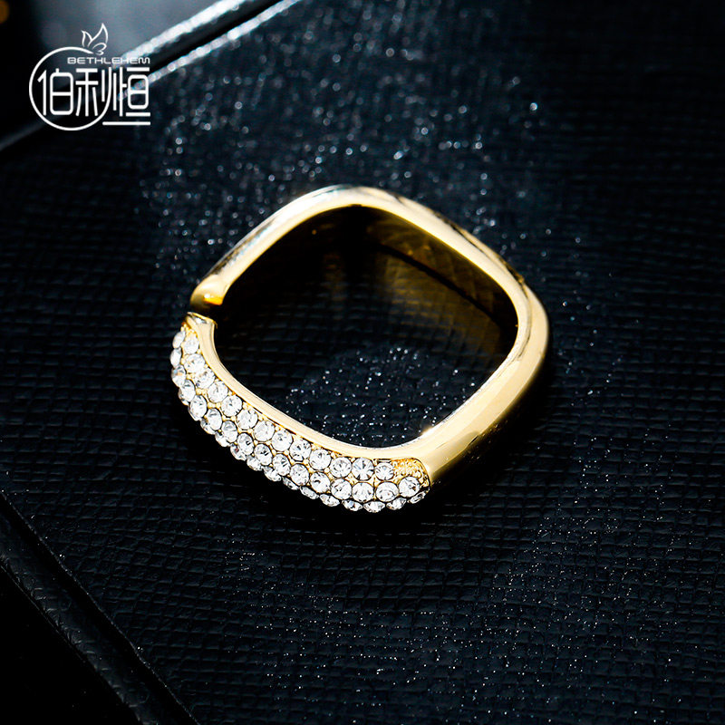 日系轻奢小方戒指女小众设计简约时尚个性戒指网红方形食指戒