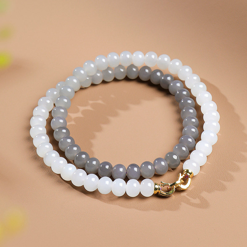印象眸和田玉项链手串套装烟紫渐变色圆珠珠链手链圣诞节礼物