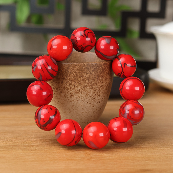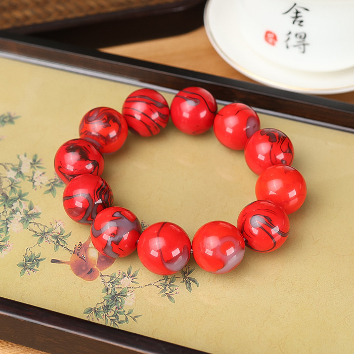 天然玉石手链新疆和田玉鸡血玉圆珠手链手串男女款玉石手排手镯