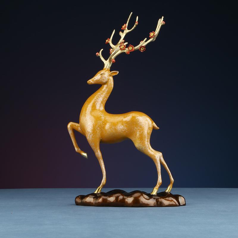 黄铜摆件《啸啸桃花鹿》家居饰品 铜工艺品鹿客厅桌面礼品