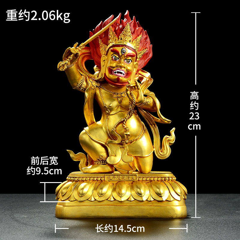 全鎏金《金刚护法》精工铜彩绘室内家用桌面铜像摆件