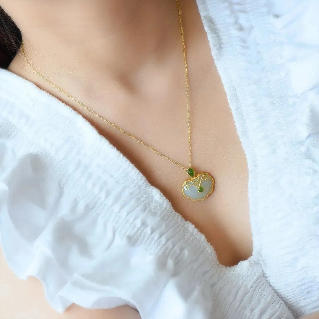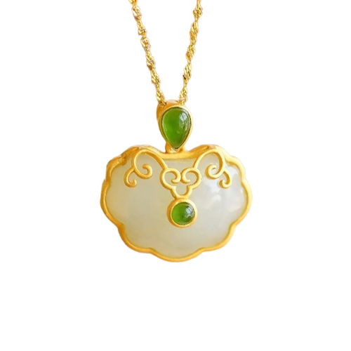 和田白玉碧玉如意吊坠女吉祥如意S925纯银镶嵌情人节妈妈礼物