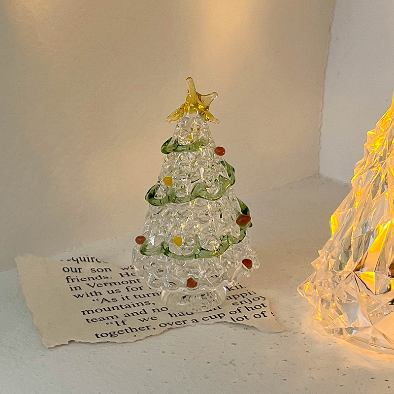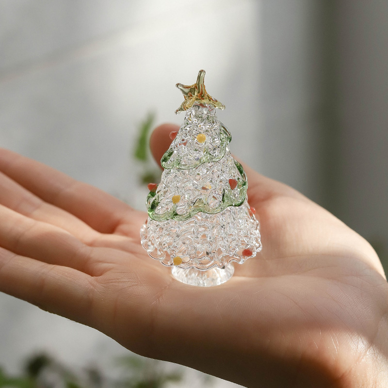 琉璃拉丝圣诞树桌面小摆件 氛围感节日DIY场景布置 车载情侣礼物