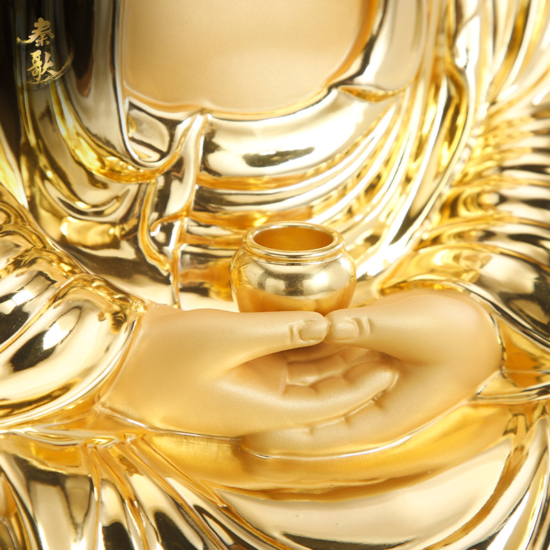 秦歌铜鎏金释迦牟尼佛药师佛阿弥陀佛像家用客厅佛堂供奉桌面摆件