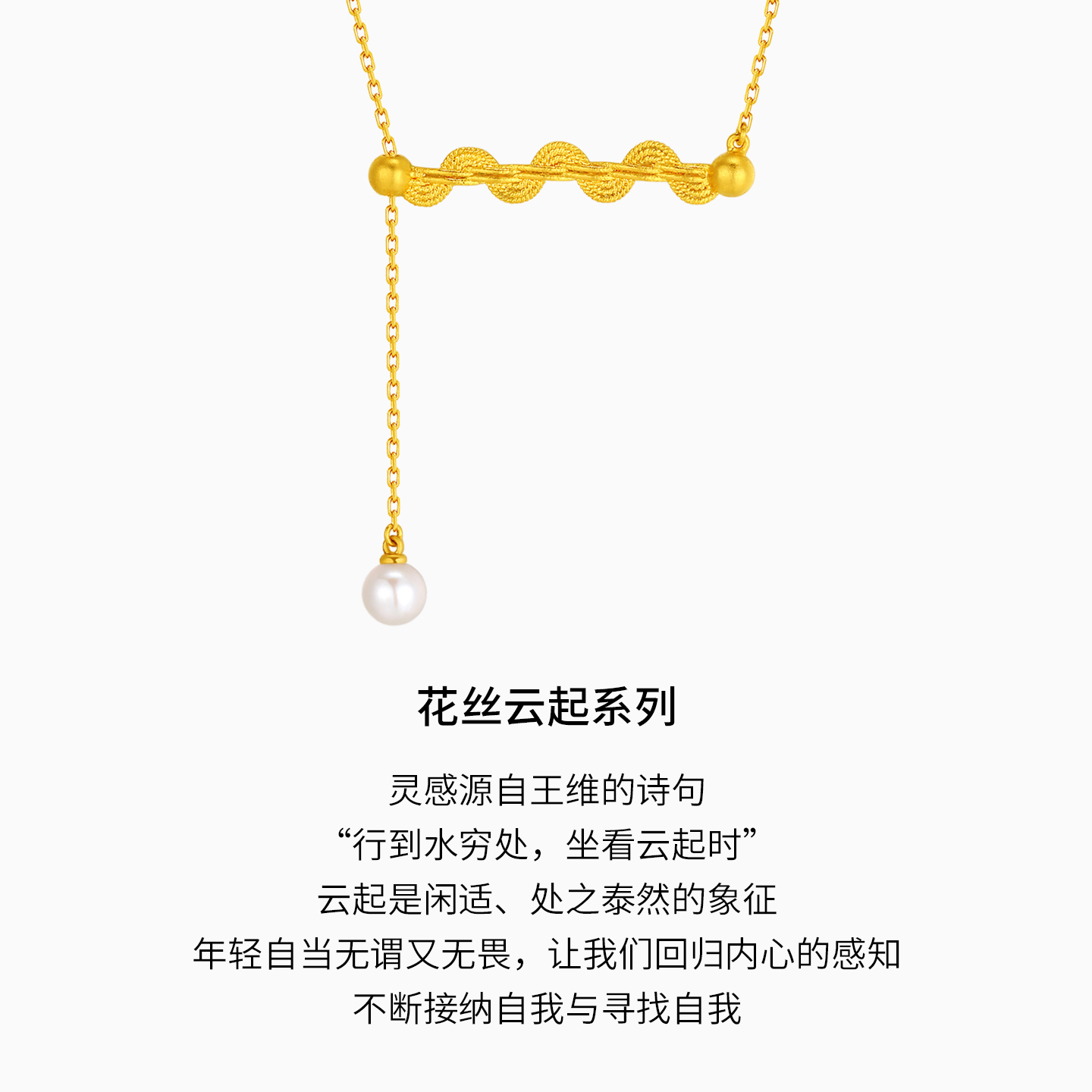 潮宏基花丝云起足金珍珠套链黄金锁骨项链高级感非遗XL生日礼物