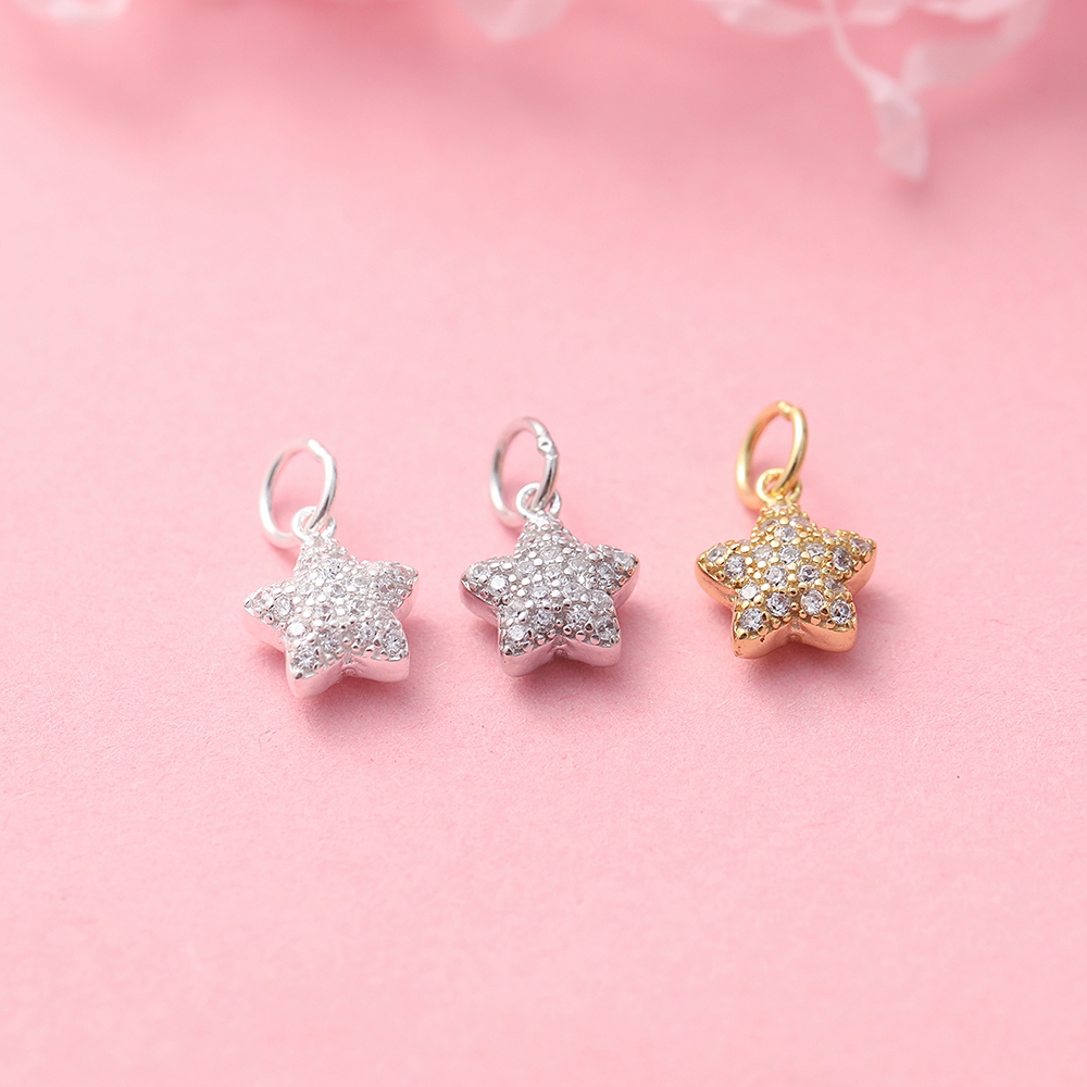 S925纯银五角星挂坠 立体锆石小星星吊坠 手工串珠手链项链挂件
