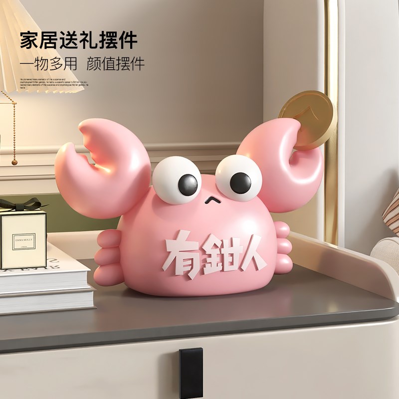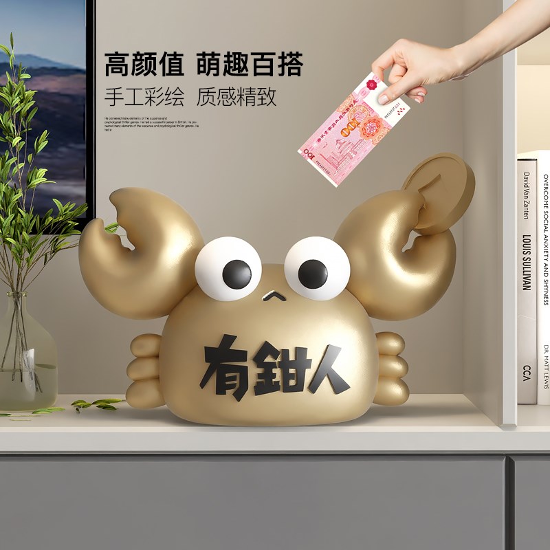 卡通螃蟹存钱罐只进不出客厅桌面储蓄罐摆件儿童男孩储钱罐零钱罐