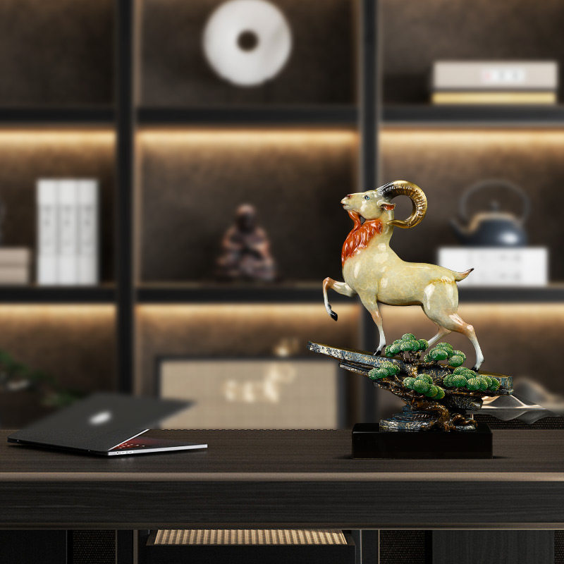 铜领头羊摆件招财老板办公室客厅玄关生肖羊装饰高端乔迁开业礼品