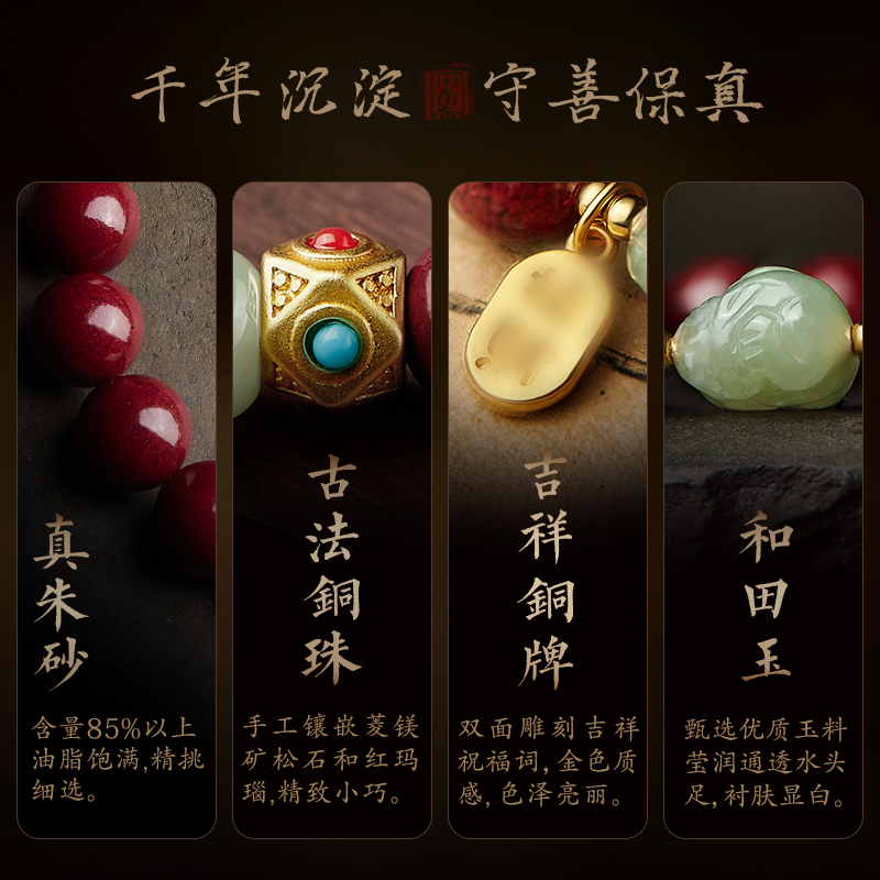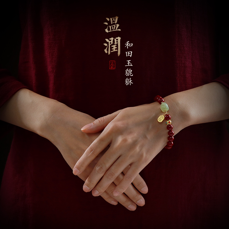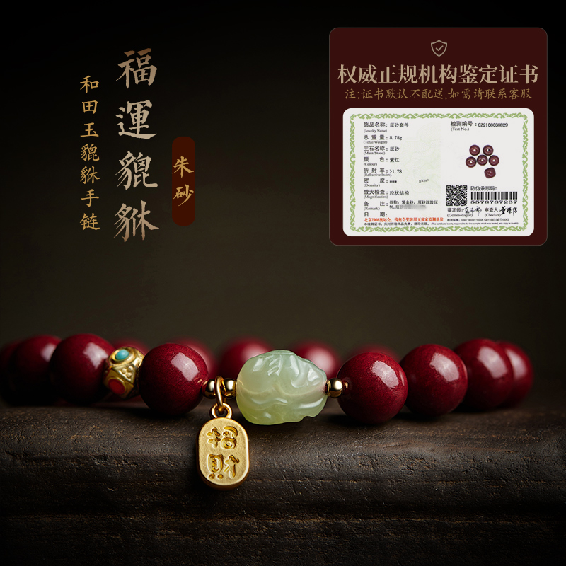 原矿朱砂手串男女和田玉貔貅手链本命年佛珠转运珠正品旗舰店礼物