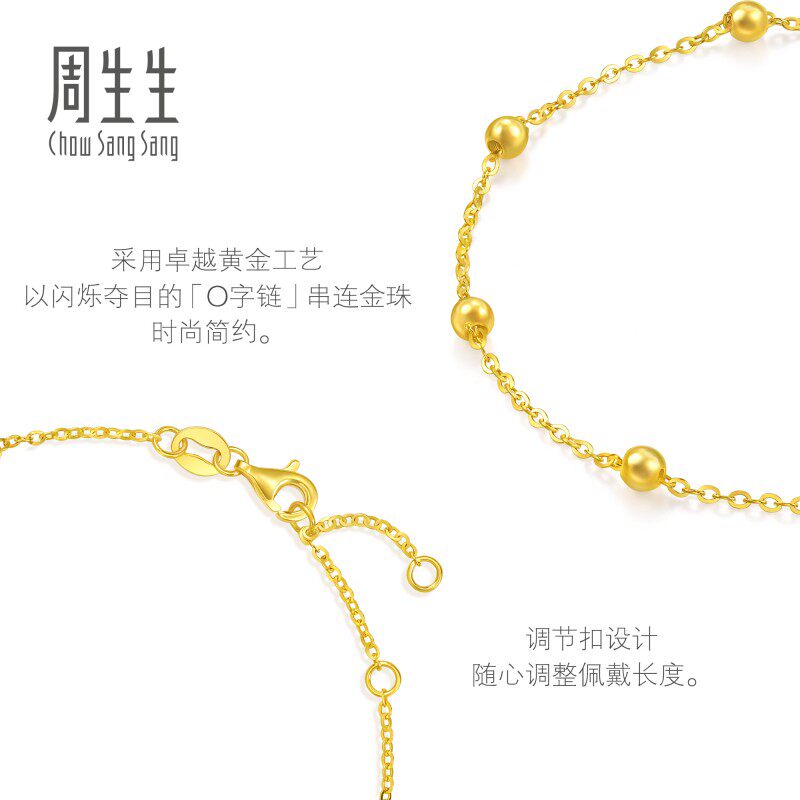 圣诞礼物周生生珠宝金饰黄金小金珠足金珠珠链黄金手链95480B计价