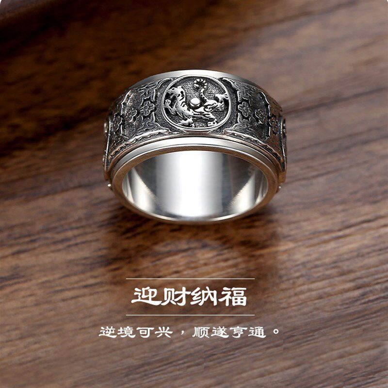 925足银四神兽戒指男士霸气复古个E性时尚单身潮人宽版扳指食指环