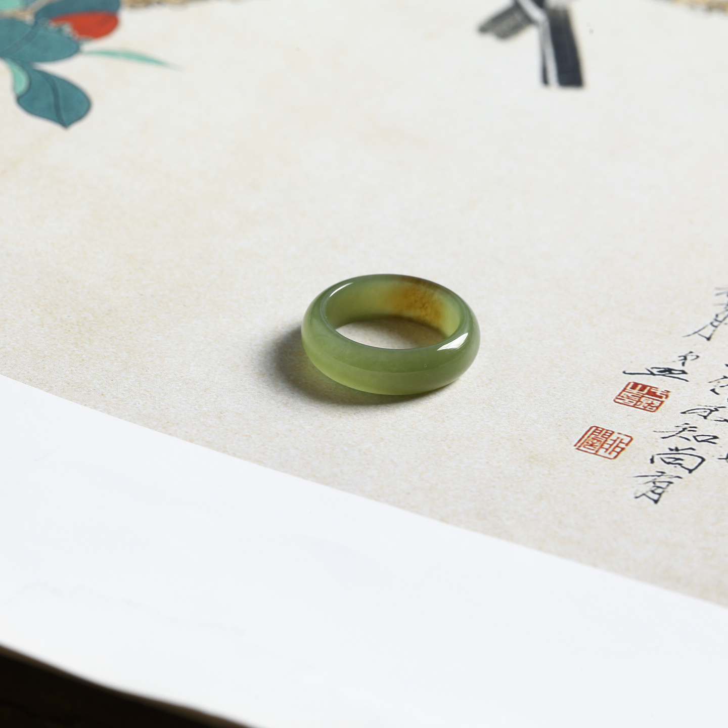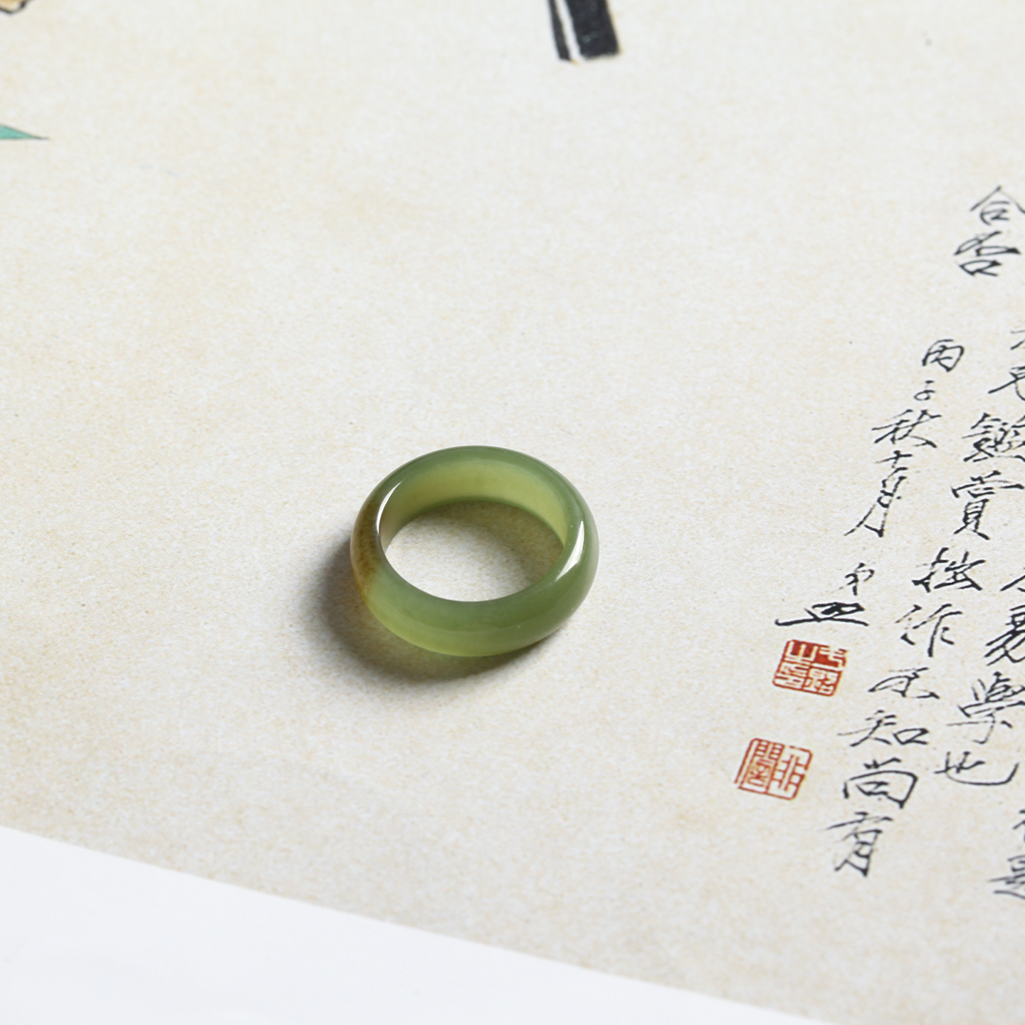11号戒指 新疆和田玉黄口料糖黄玉圆弧素圈指环 1045