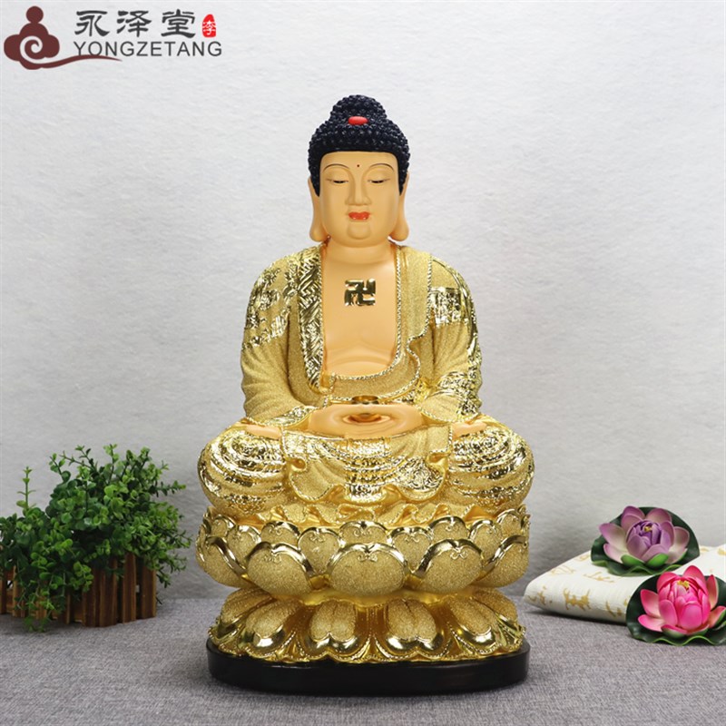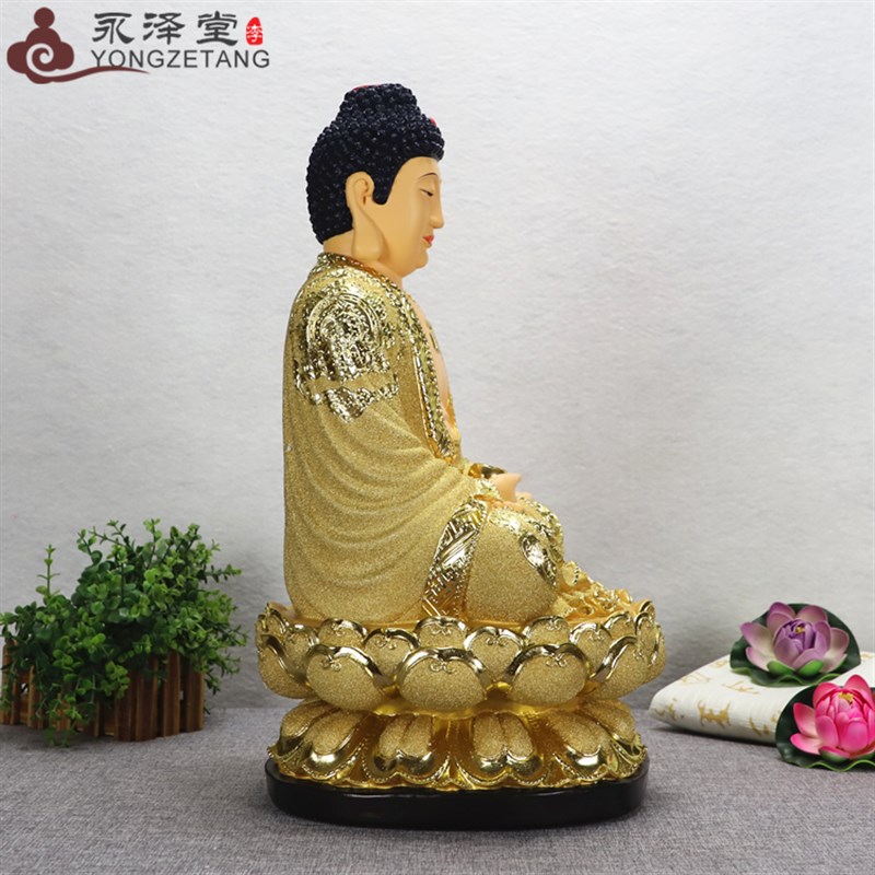 极速永泽a堂中式佛堂12/19寸琉璃金三宝佛阿弥陀佛佛像桌面佛具摆