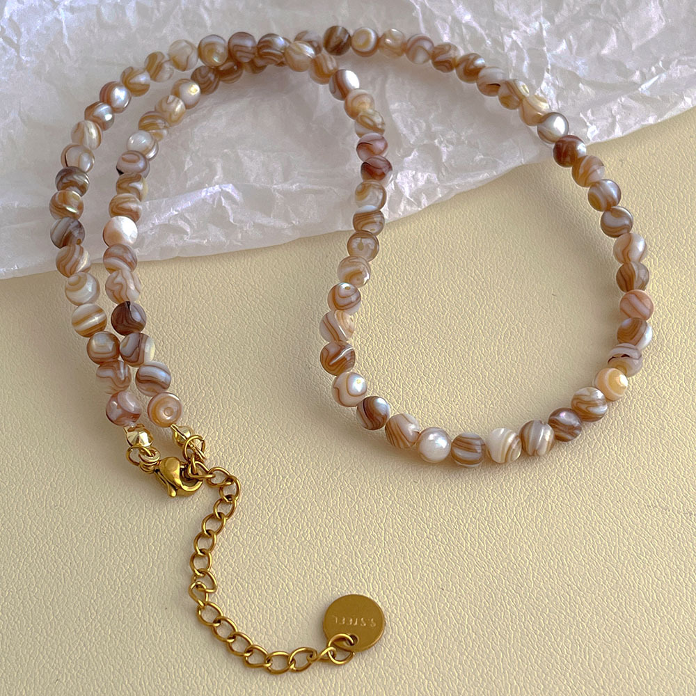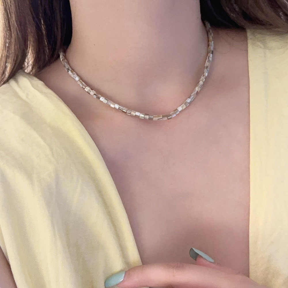 春夏新款百搭天然贝壳米粒串珠项链女时尚个性叠戴锁骨链气质配饰