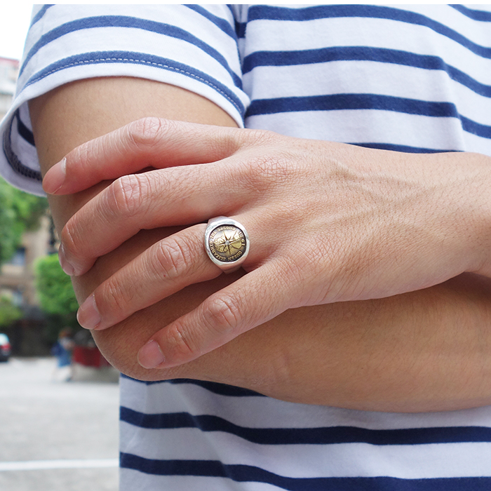 日本AMP JAPAN微笑伊莉莎白二世铜币小水钻戒指日本制16AO-245