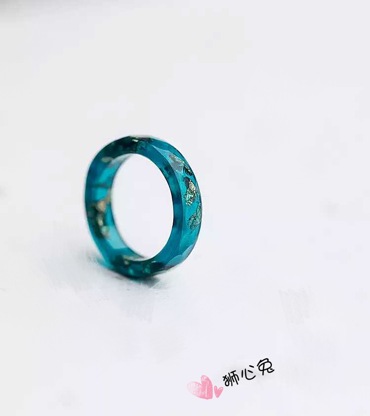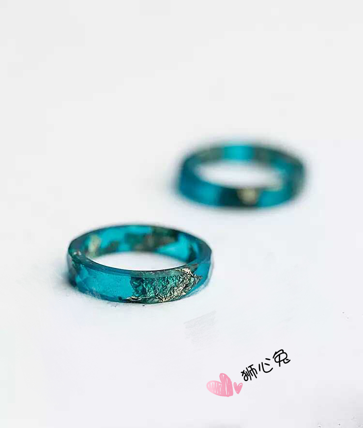 狮心兔 手工制作 波希米亚 蓝绿色 树脂戒指金箔 情侣 戒指
