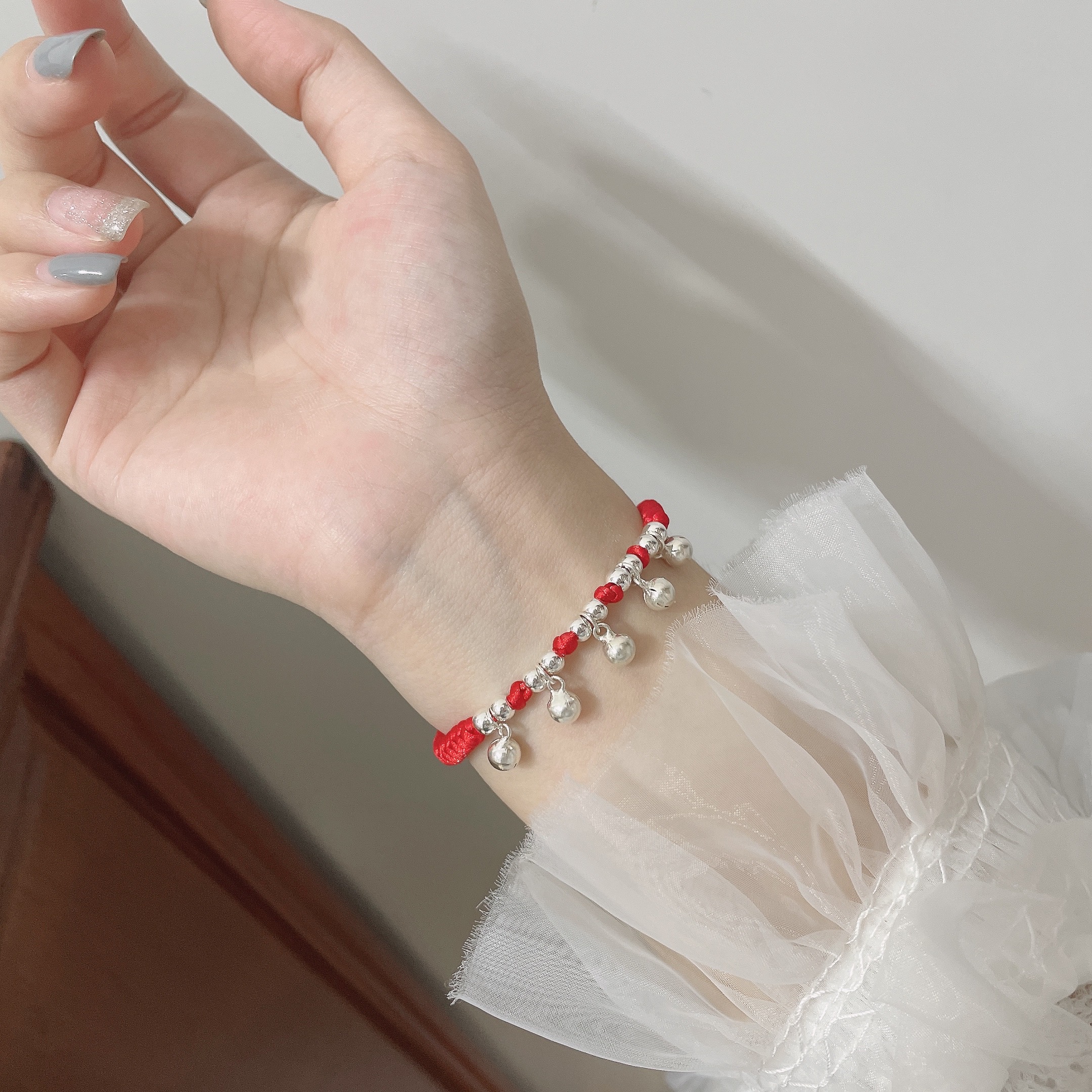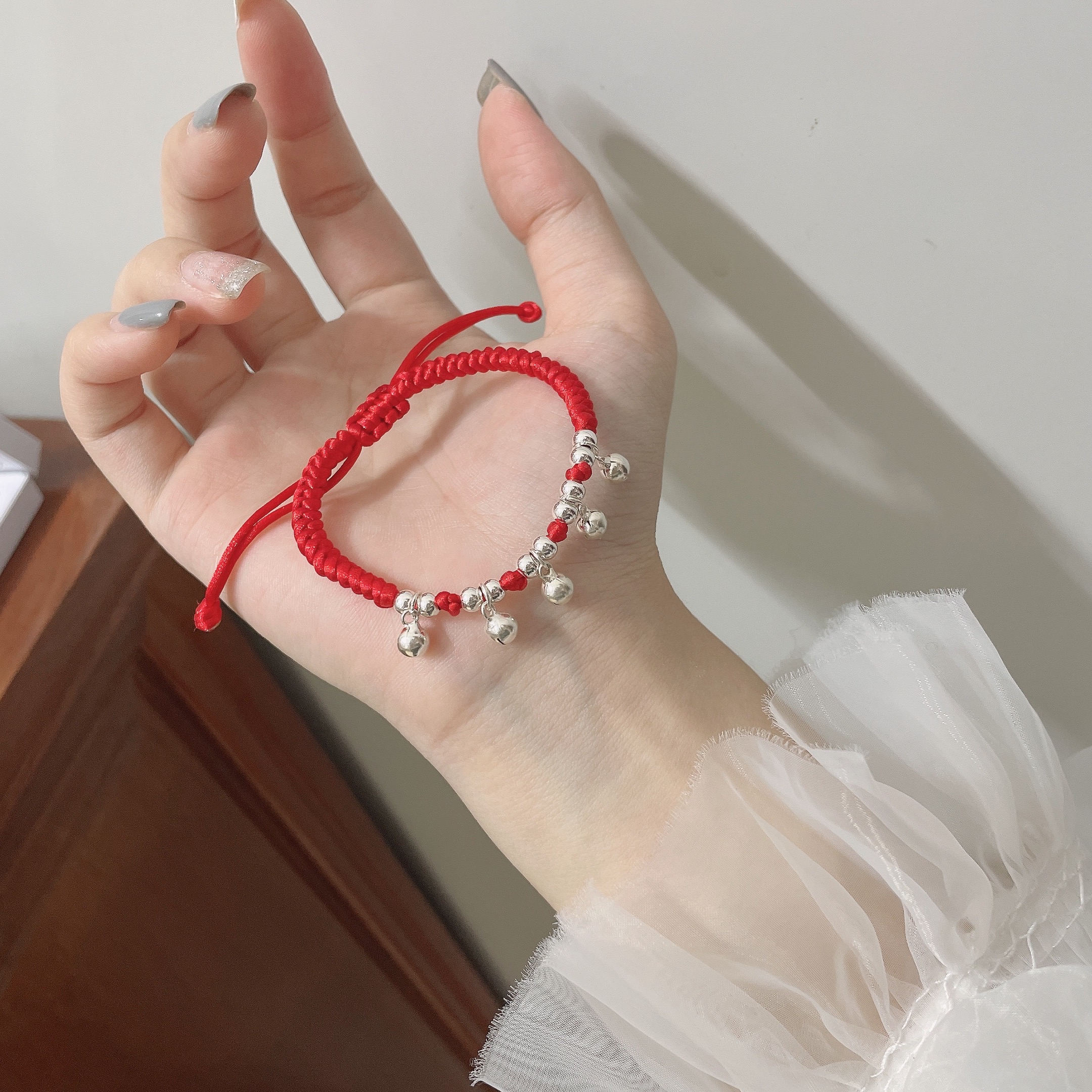 s925纯银五宝铃铛红绳手链女编织手绳情侣款国风潮气质女友礼物