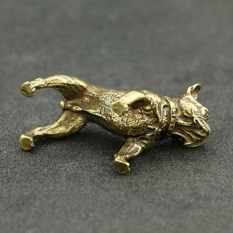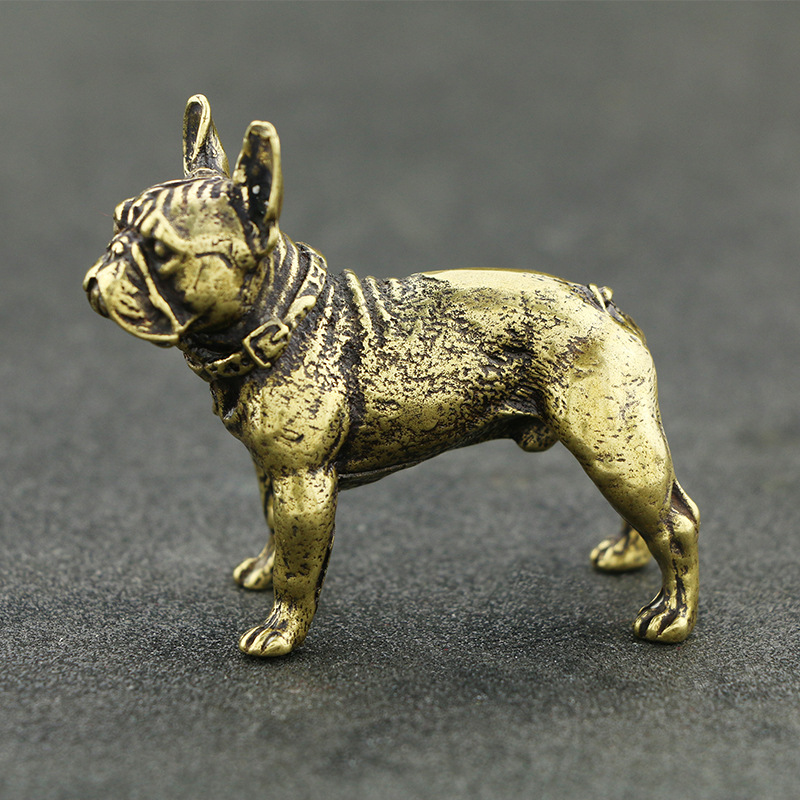 实心纯黄铜法国斗牛犬小摆件生肖狗迷你桌面茶宠手把件铜器工艺品