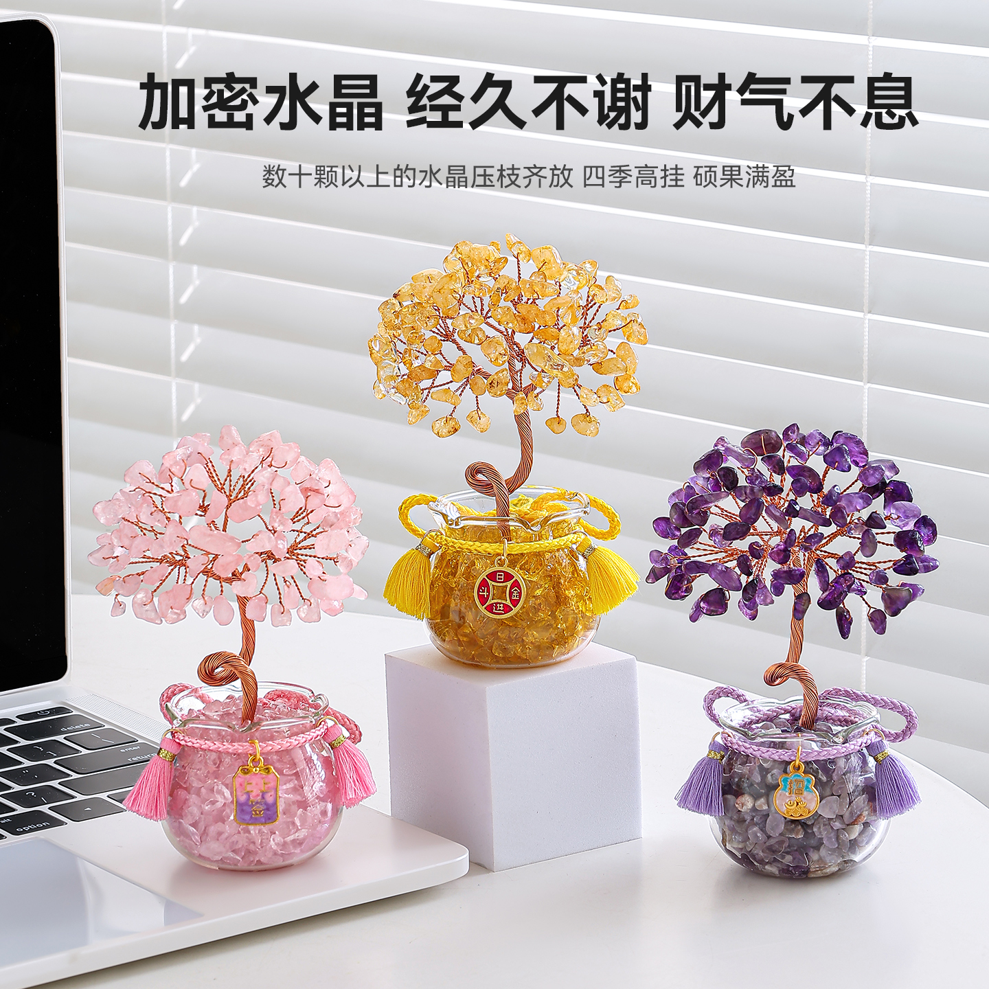 招财猫黄紫水晶发财树入户玄关摆件2025新款办公室桌面装饰品工位