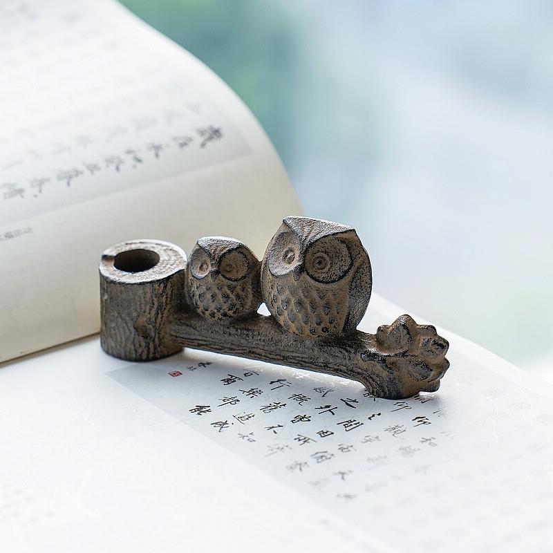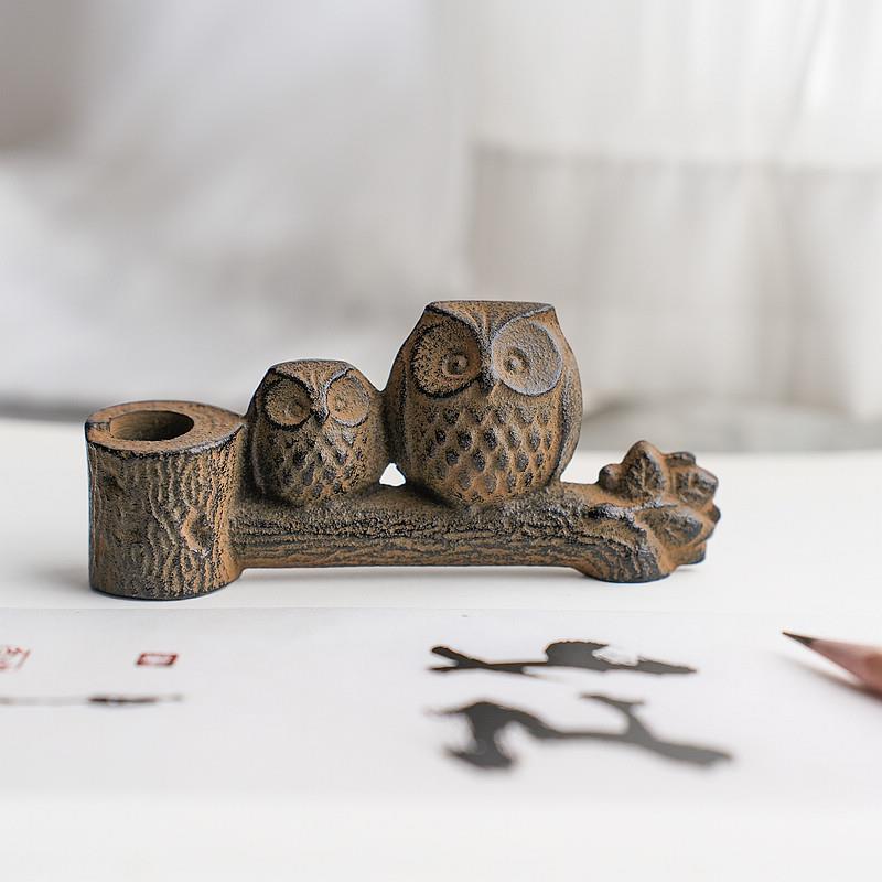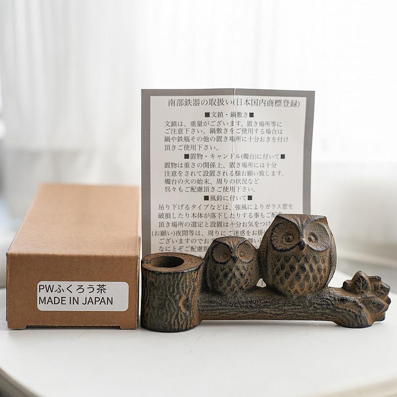福运双至 日本进口猫头鹰南部铁器 铸铁笔架文镇摆件镇尺镇纸书镇