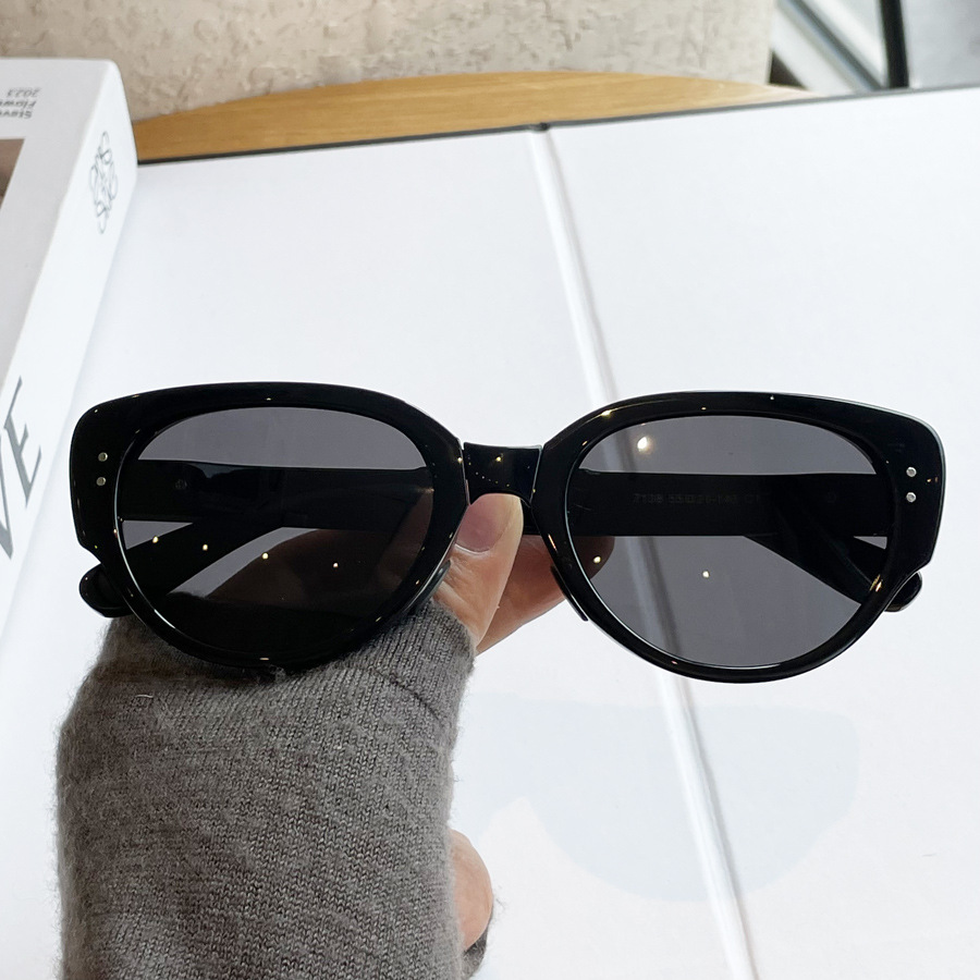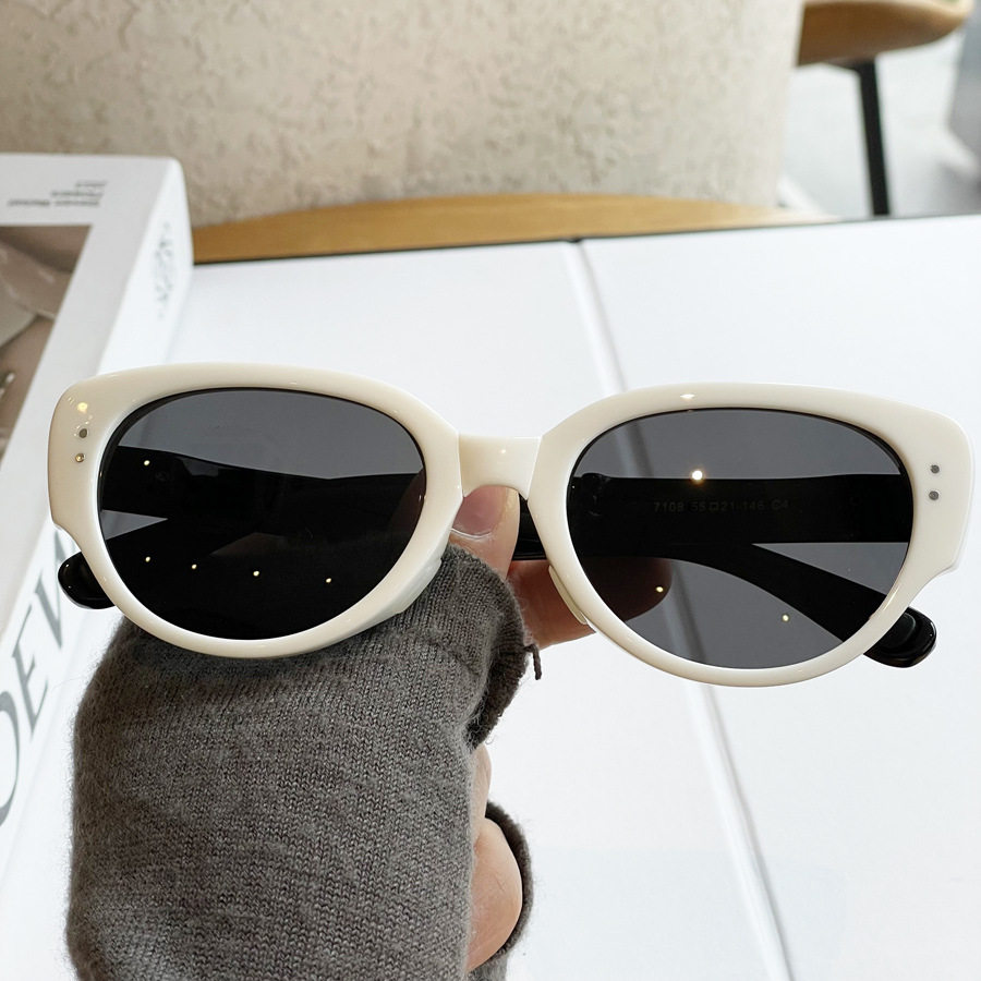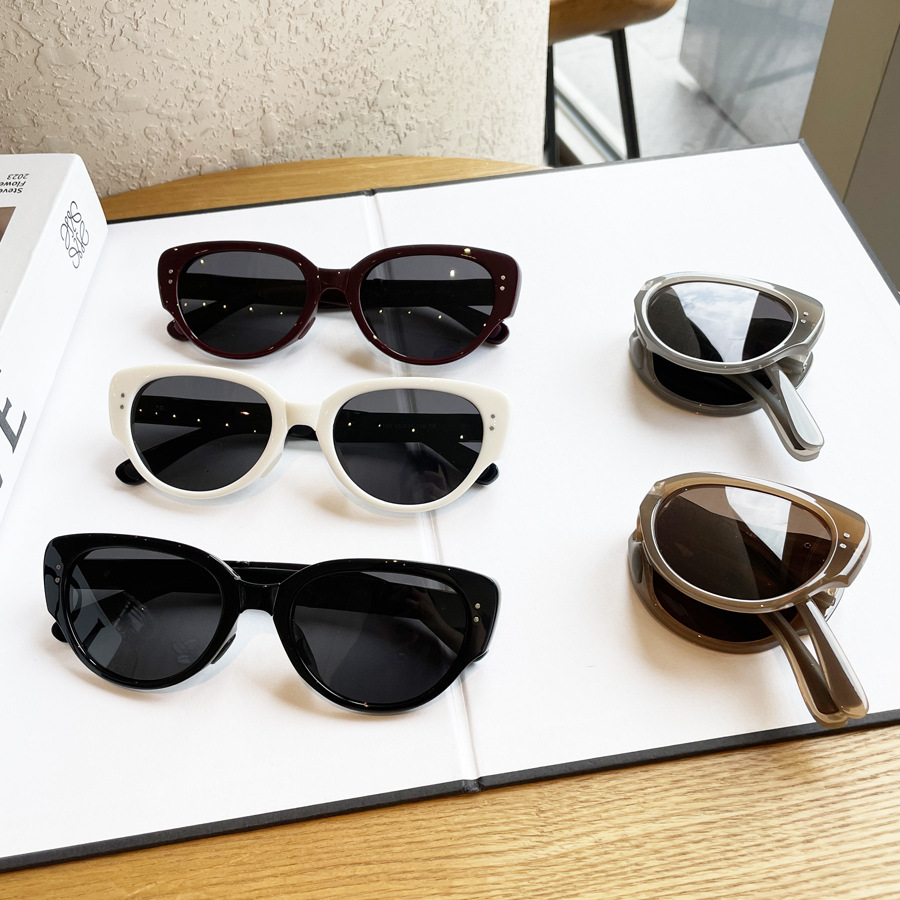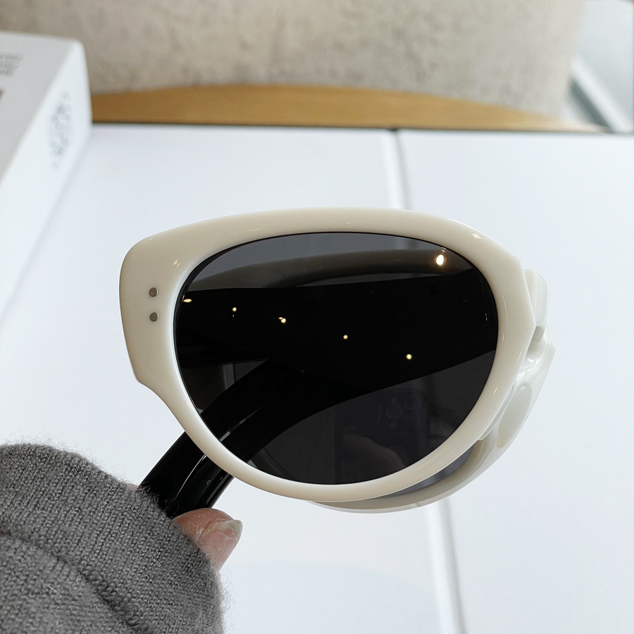 日本品质韩版可折叠偏光太阳镜女美式猫眼墨镜时尚潮网红白色个性
