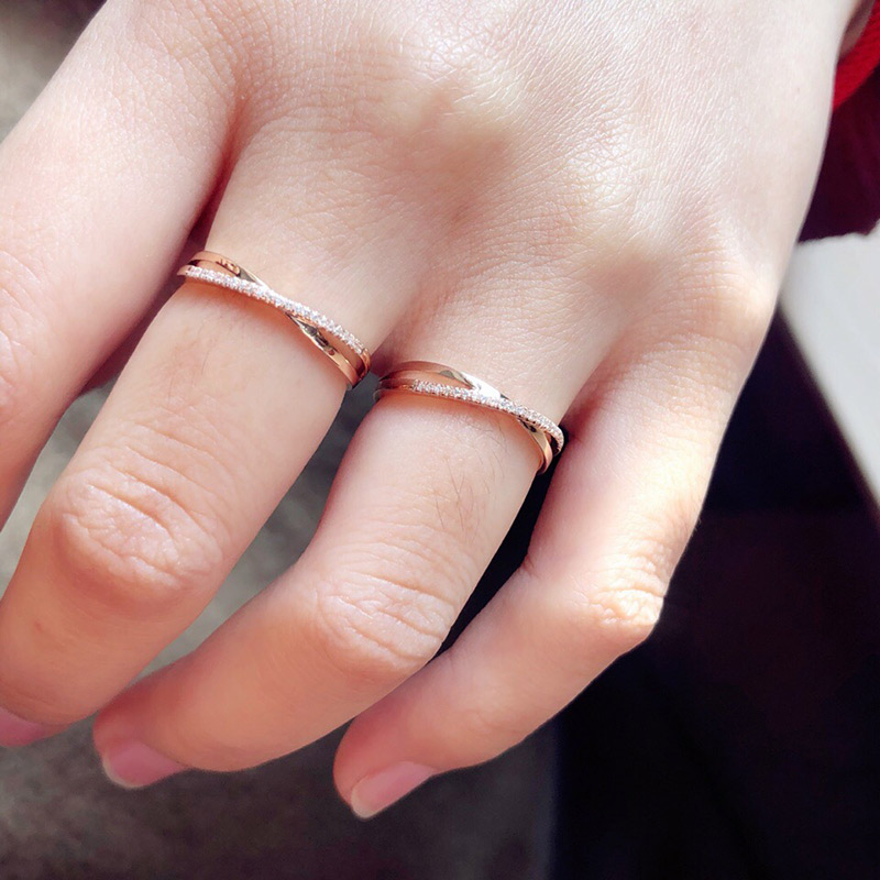 18K玫瑰金钻石戒指缠绵交错戒指女戒时尚百搭钻戒小清新彩金戒指